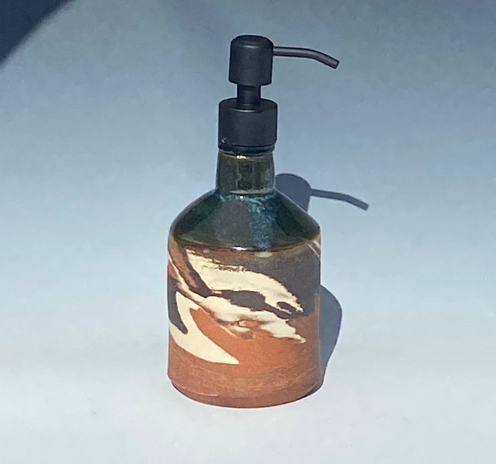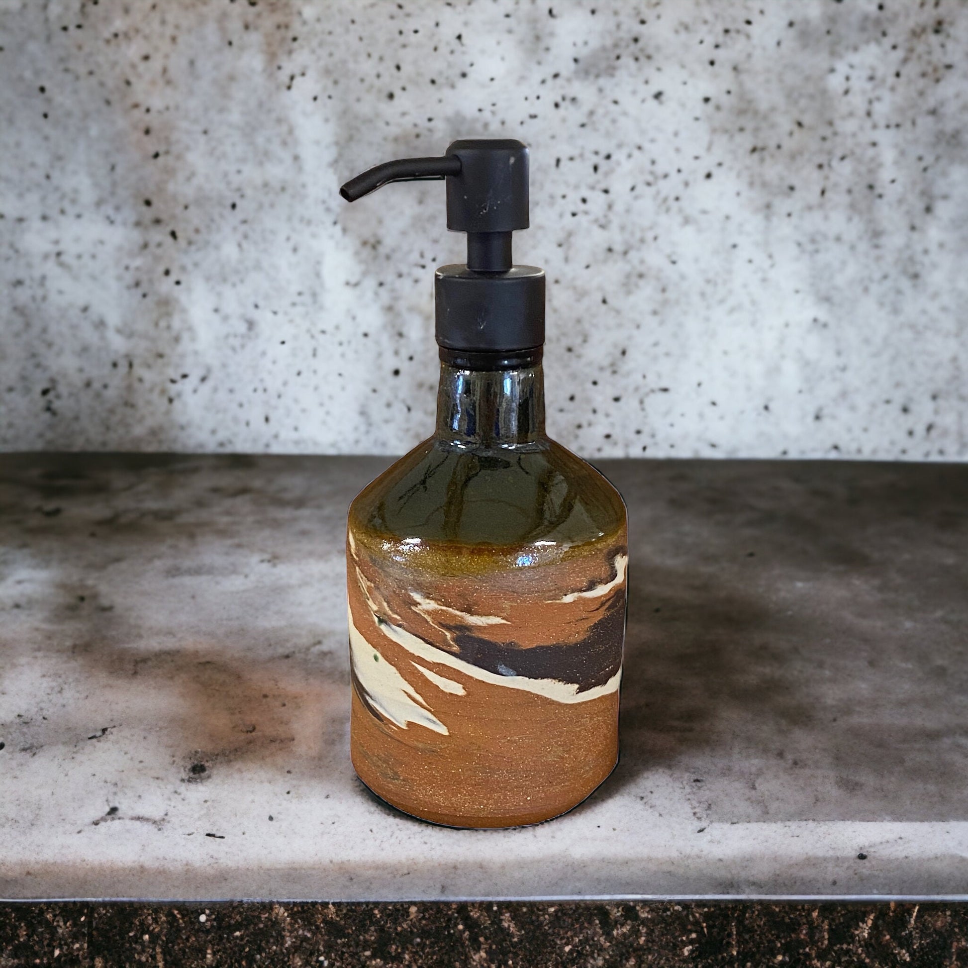 This agateware stoneware soap dispenser is the perfect accent piece for kitchens or bathrooms. The stoneware vessel cuts a striking figure on your countertop . High-fired stoneware is exceptionally strong. Fill this beautiful bottle with your favorite soap or loation