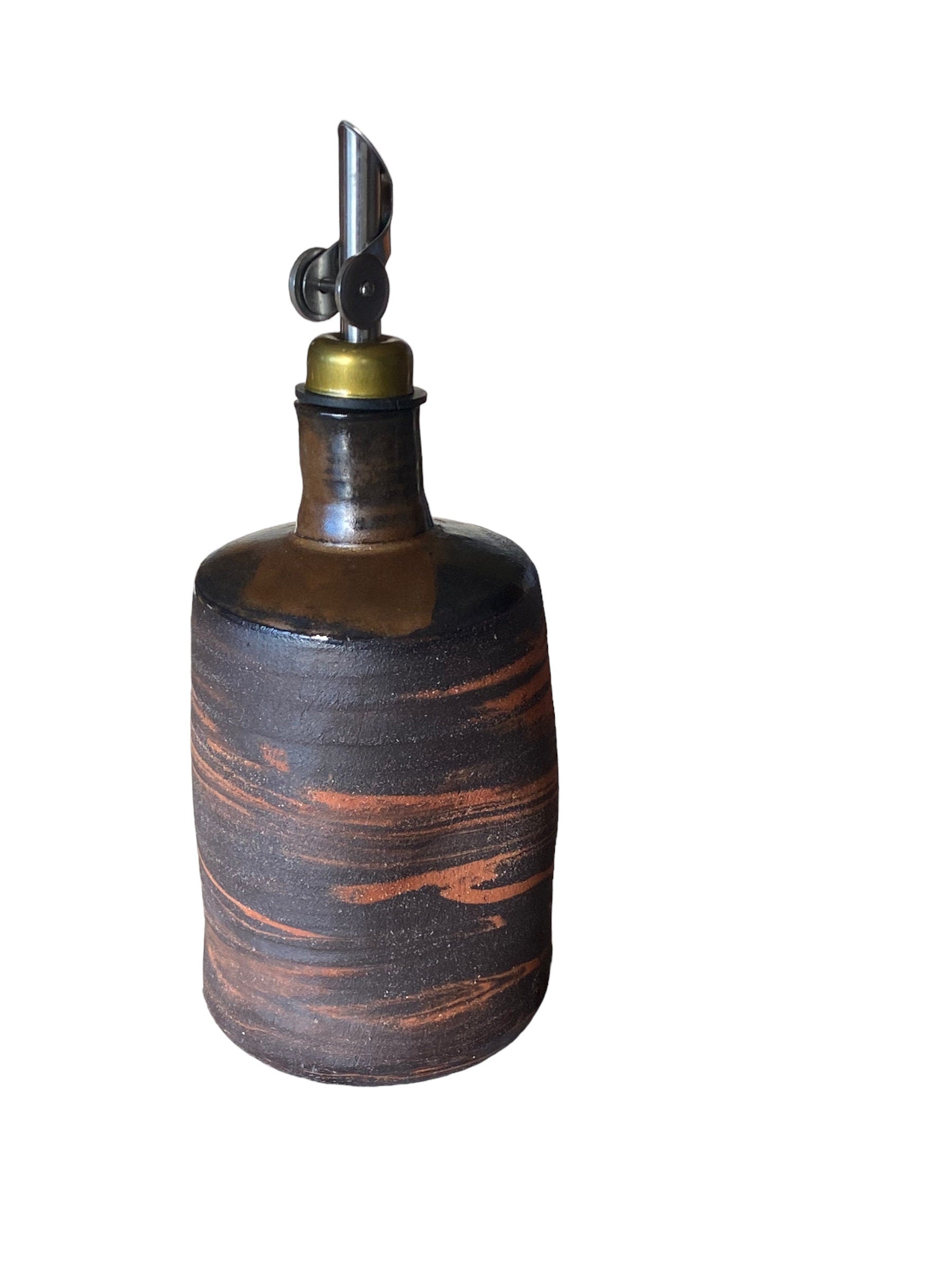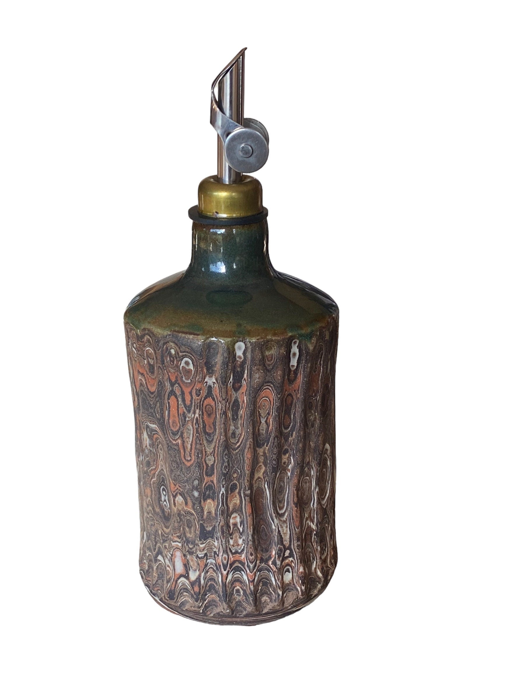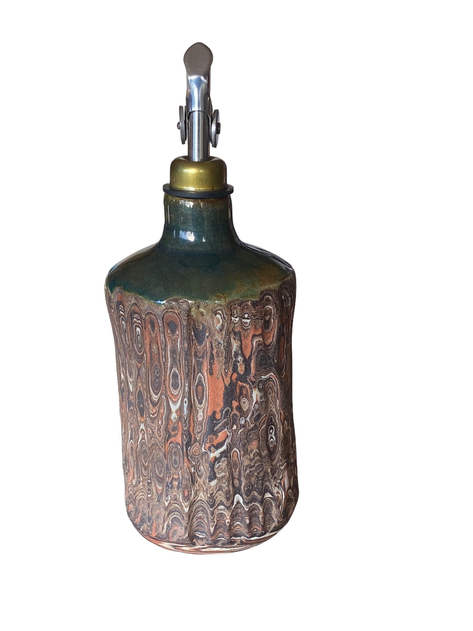 Artisan-Crafted 16-Ounce Handmade Agateware Oil Vinegar Bottle: Elevate Your Table with Unique Pottery