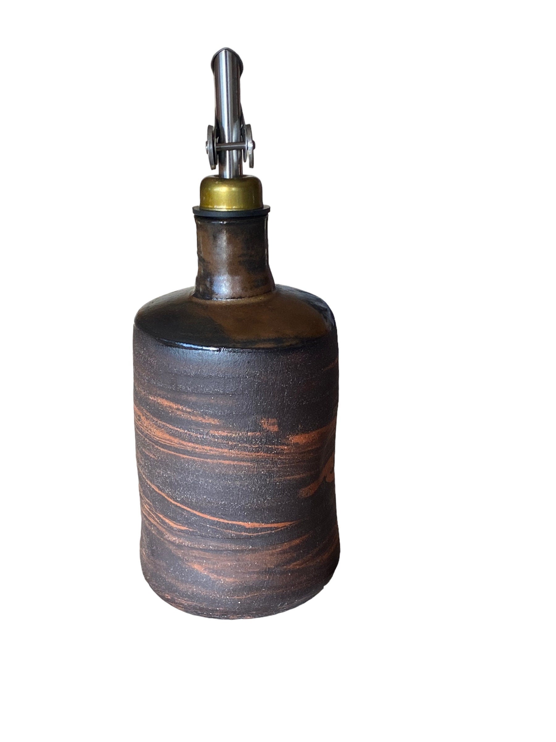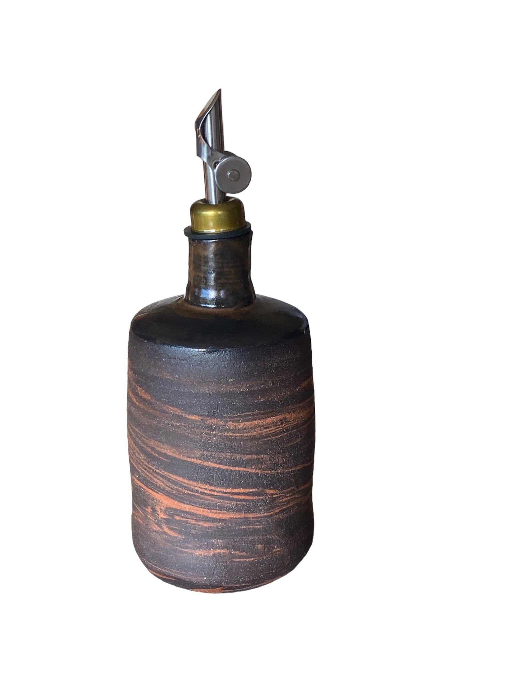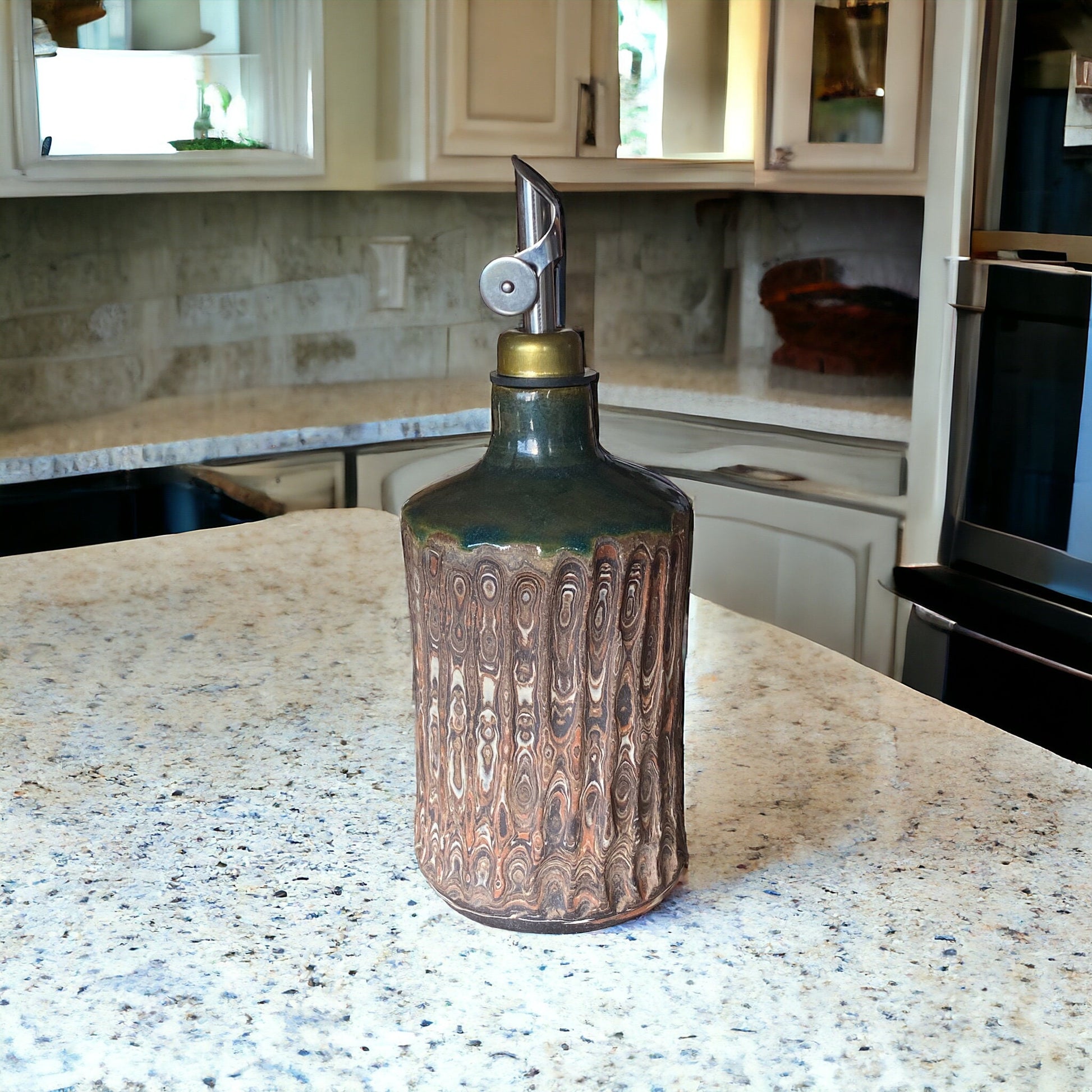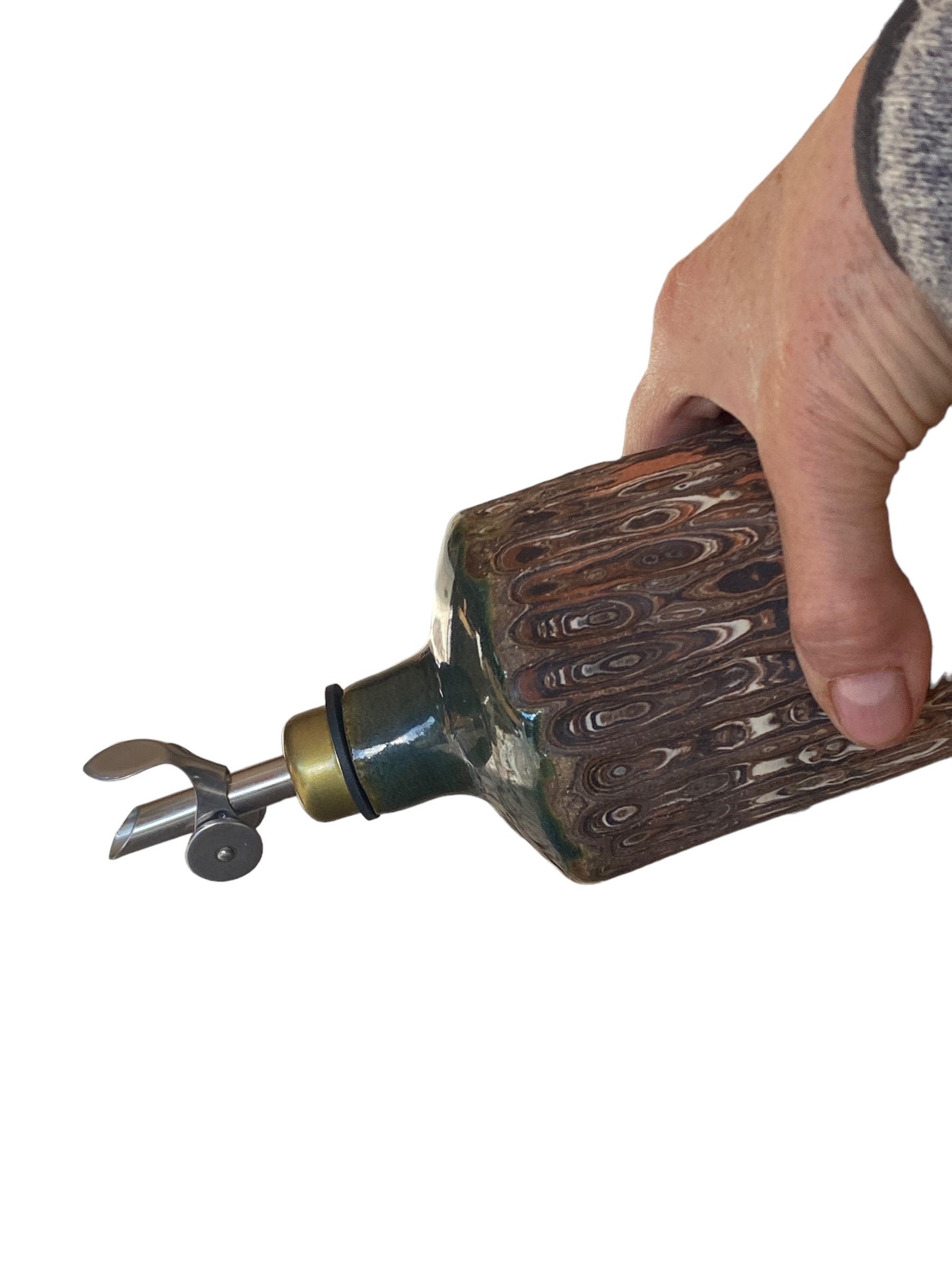 Artisan-Crafted 16-Ounce Handmade Agateware Oil Vinegar Bottle: Elevate Your Table with Unique Pottery
