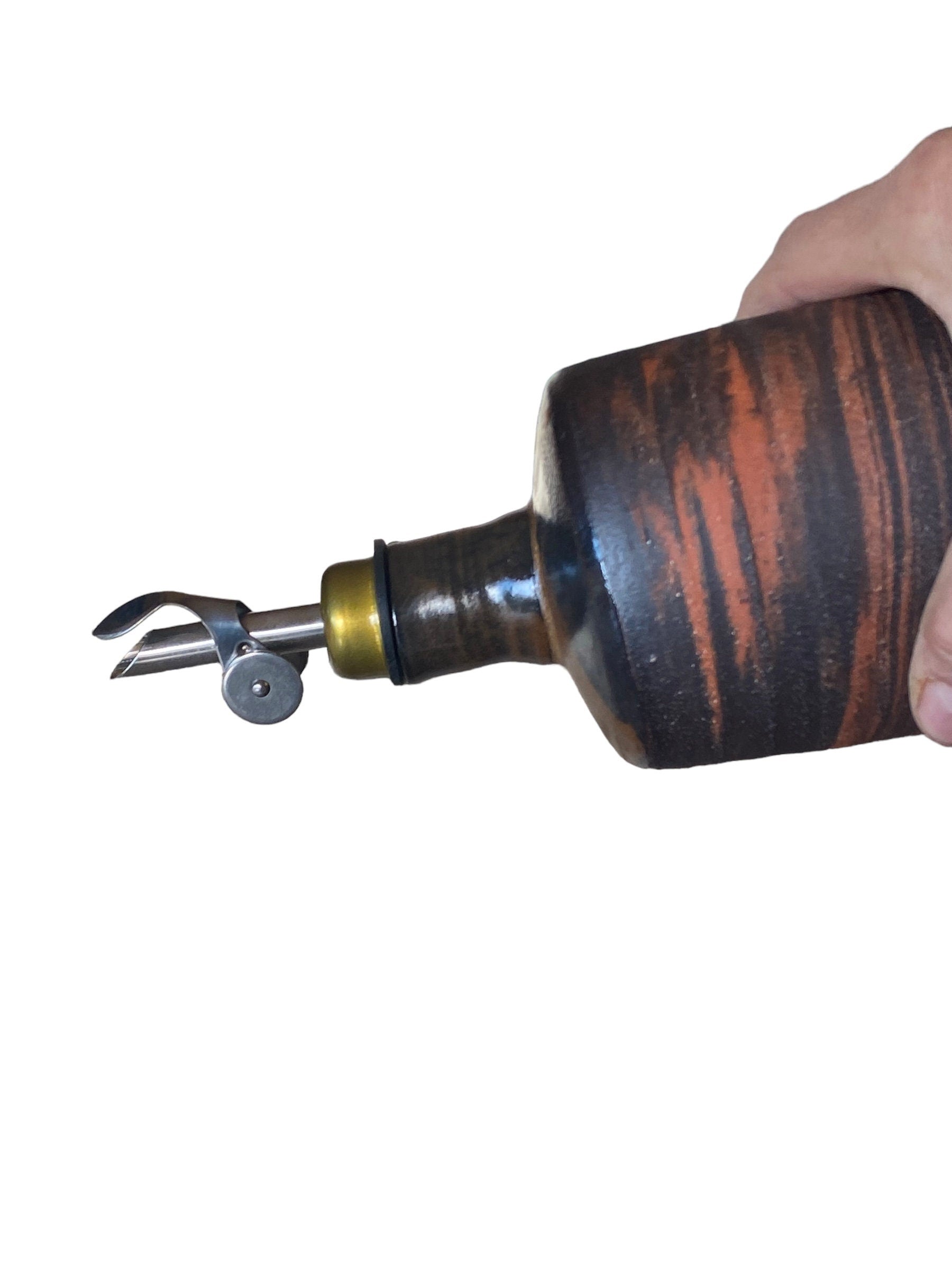 Elevate your dining experience with our Handmade Agateware Oil or Vinegar Bottle, a earthy addition to your kitchen décor. Crafted with care, this bottle showcases the unique beauty of Agateware pottery, featuring red, white, and black patterns and colors. Perfect for serving oil, vinegar, or any other liquid condiments, this bottle adds a touch of artisanal charm to your table. Handmade with love, each bottle is one-of-a-kind, making it a delightful gift for any occasion. Bring style and functionality to your dining table with this exquisite piece of pottery.