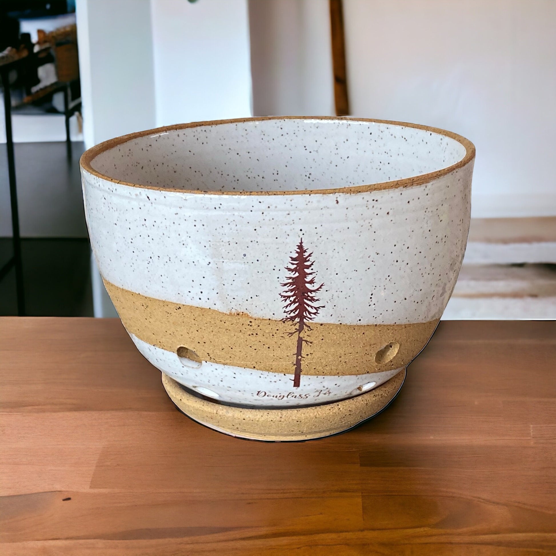 Introducing my Speckled White 4-Cup Capacity Berry Bowl, a stylish and functional kitchen essential that seamlessly combines form and function. Crafted with care and adorned with Douglass Fir art, this bowl is designed to enhance your kitchen aesthetic while providing the perfect vessel for your favorite berries.