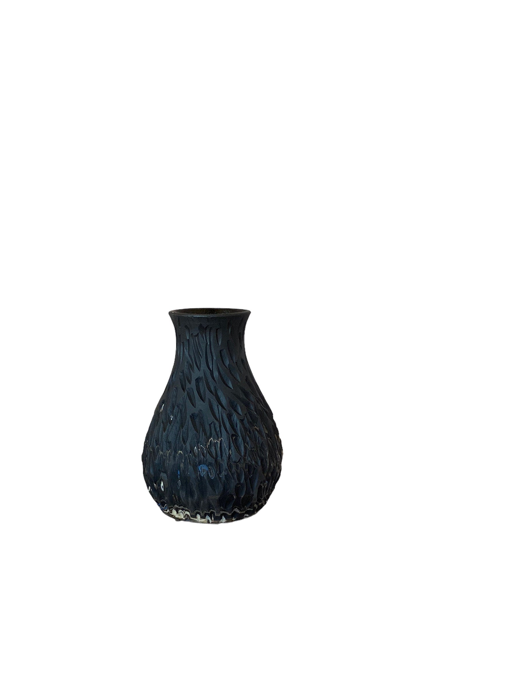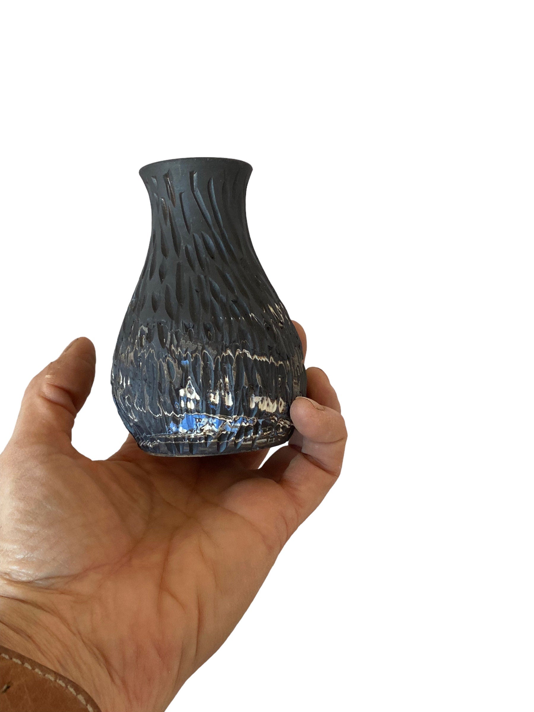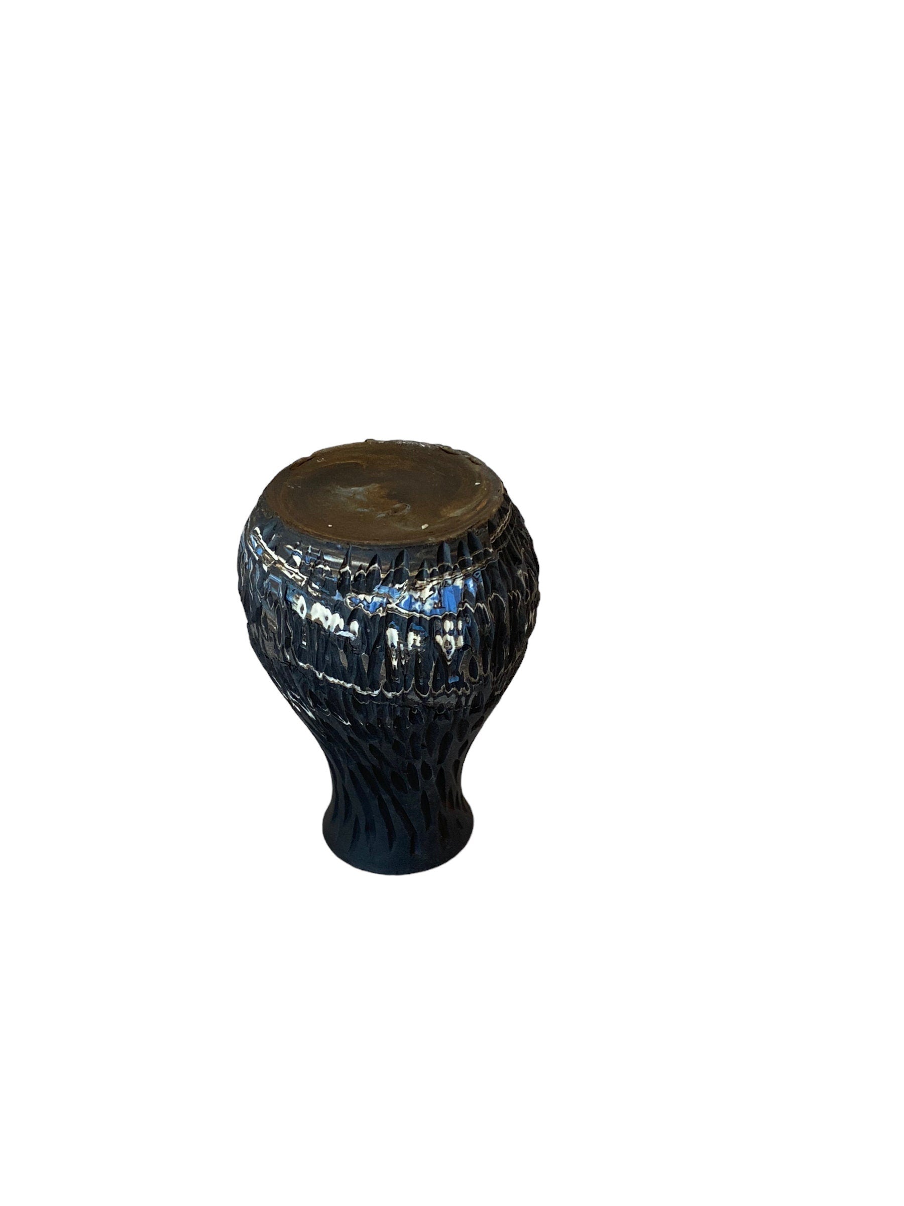 This sophisticated contemporary Agateware bud vaseis perfect for showcasing fresh cut buds and small bunches of flowers. The vase was hand thrown on an electric pottery wheel out of layered colored clays. It was fired, and the interior was glazed in a gloss blue glaze. The vase is 4 inches tall and has a .5 inch opening.