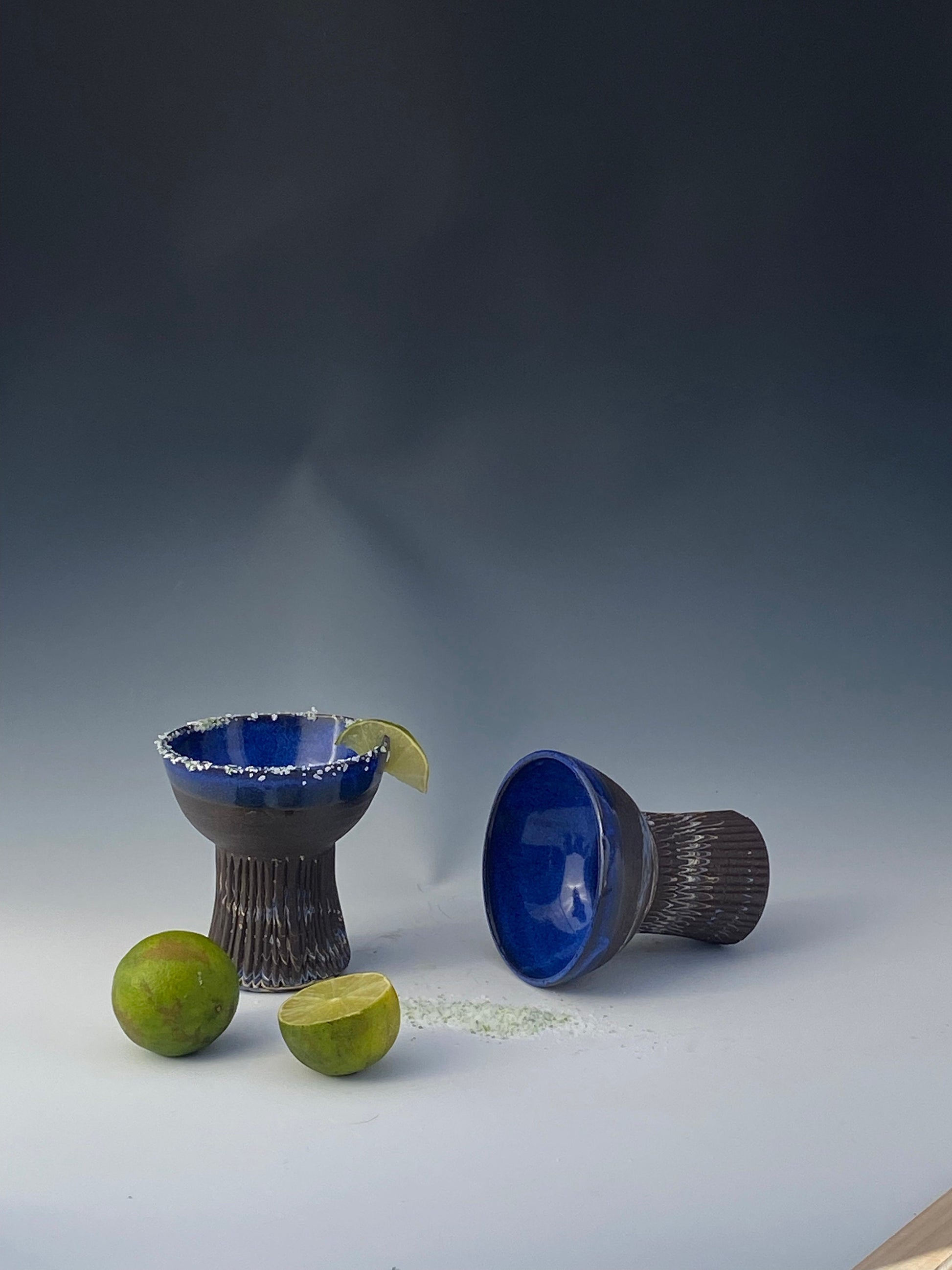 This 8 Ounce Electric Blue Margarita Glass that boasts an intricate fluted design on the handle of the glass. This hollow margarita glass is skillfully hand carved and sanded to ensure that it is comfortable to touch. The electric blue glaze adds a pop of color and elegance, making it perfect for a night of entertaining or to add to your collection. With a capacity of 8 ounces, this margarita glass is perfect for serving your favorite cocktails. Add it to your barware collection or give it as a gift to your loved ones.