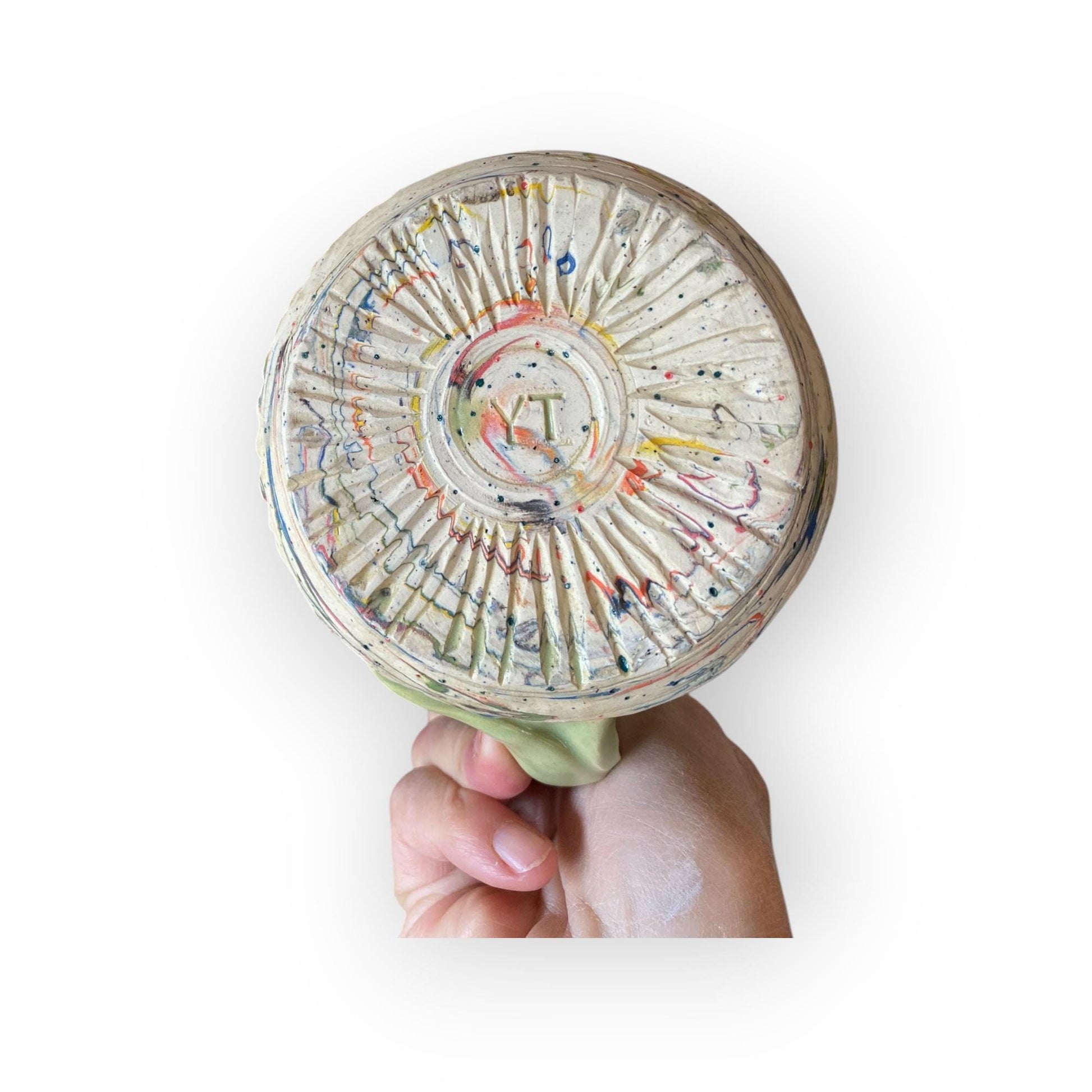 Indulge in a stylish coffee or tea experience with my rainbow Agateware Carved Coffee Mug, part of my handmade pottery collection. Crafted from six colors of stoneware, this mug features a captivating and distinctive design. Hand-thrown with care, it offers a comfortable grip, while the light green glaze accentuates the intricate layers of clay. Whether it's your morning ritual or an afternoon pick-me-up, this mug adds an elegant touch to any moment. Elevate your daily routine with this essential piece for coffee and tea enthusiasts alike.
