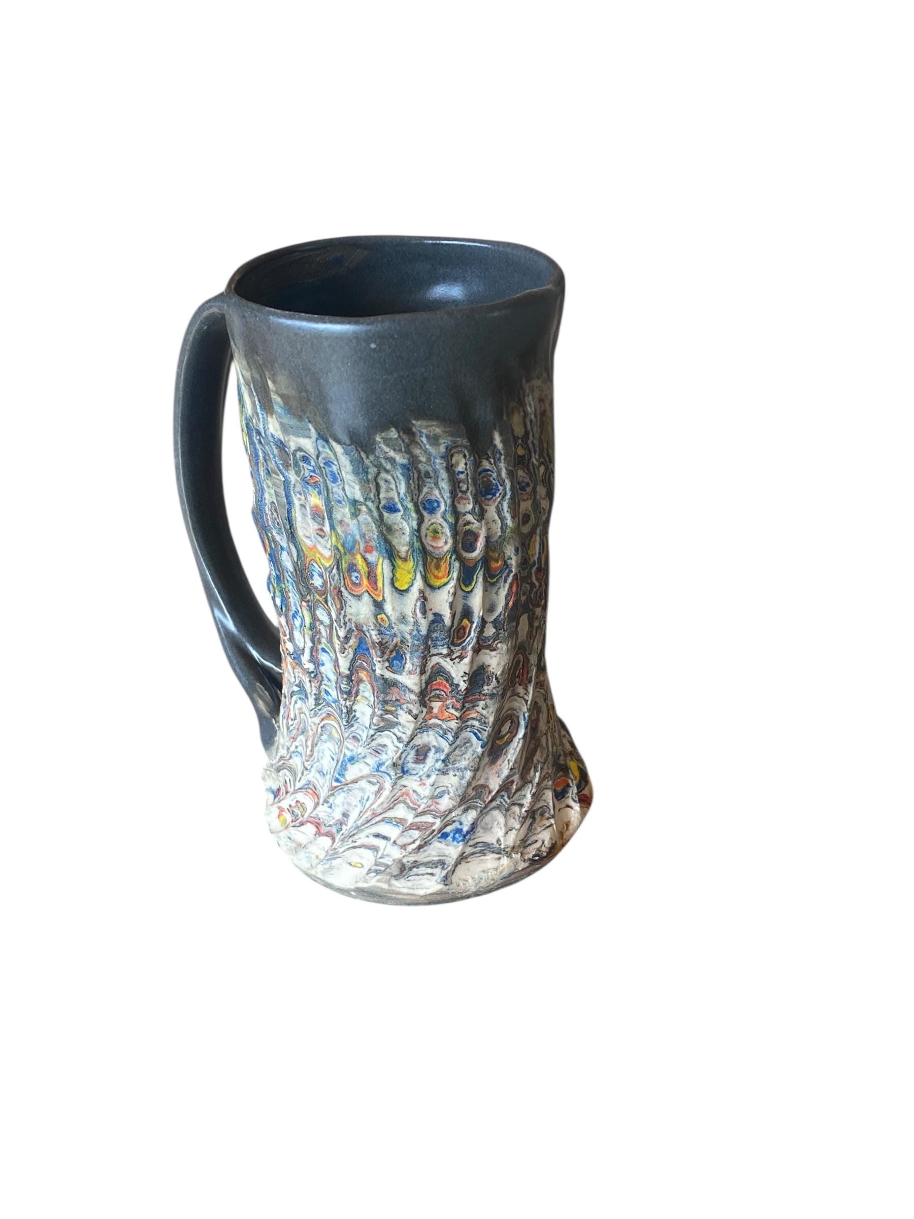 Enjoy coffee or tea in this one-of-a-kind fluted porcelain mug, crafted using the traditional Japanese Neriage technique. Layered and swirled colored clays are wheel-thrown and hand-carved, revealing intricate, organic patterns. The interior, handle, and rim are glazed, while the unglazed exterior is sanded to a smooth, luxurious finish. A perfect artisan mug for daily use or display, showcasing modern craftsmanship and Japanese-inspired design.