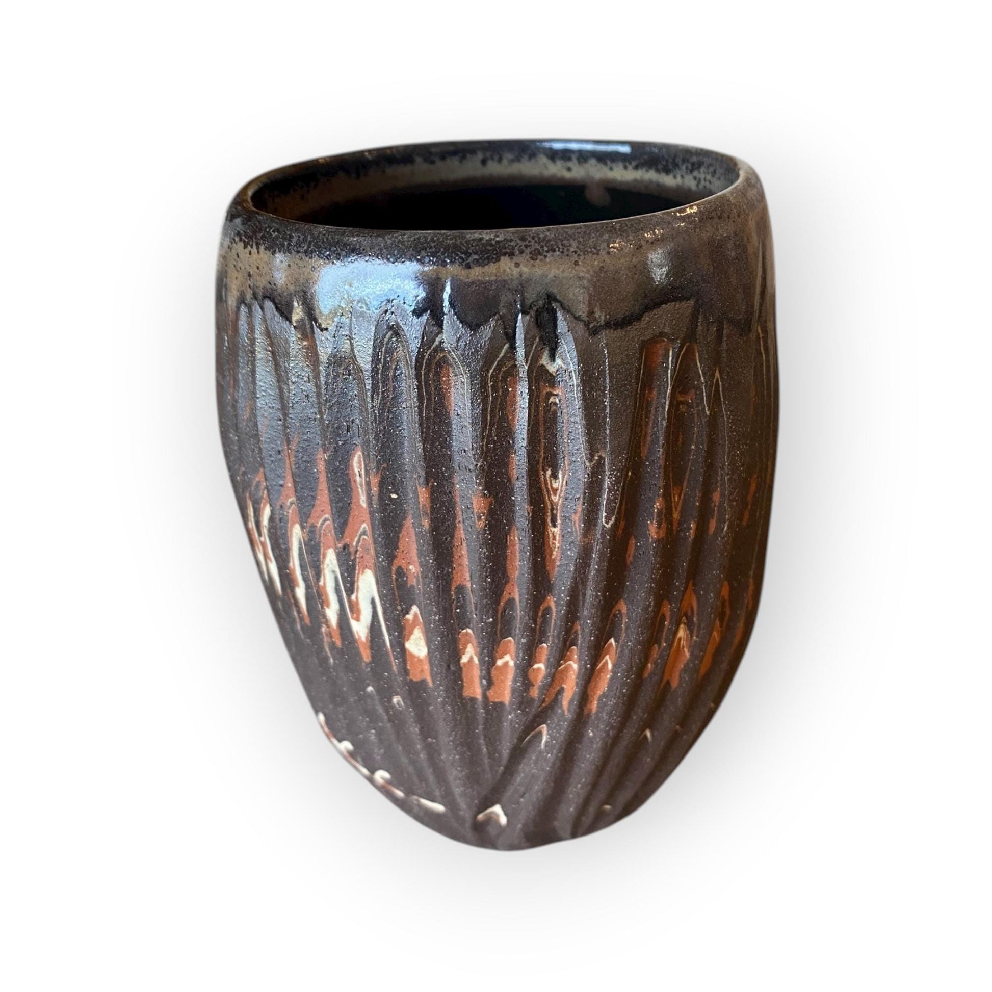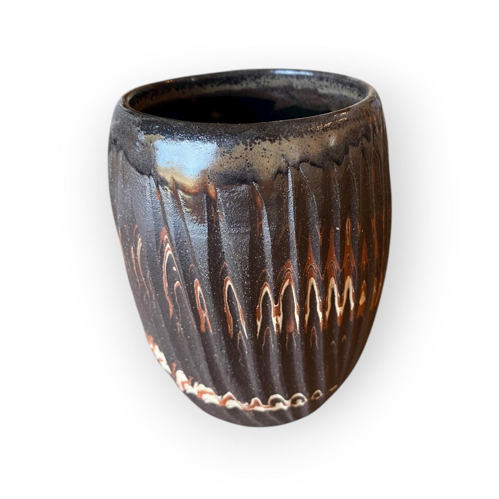 Stemless Carved Agateware Cup – Handmade Stoneware
