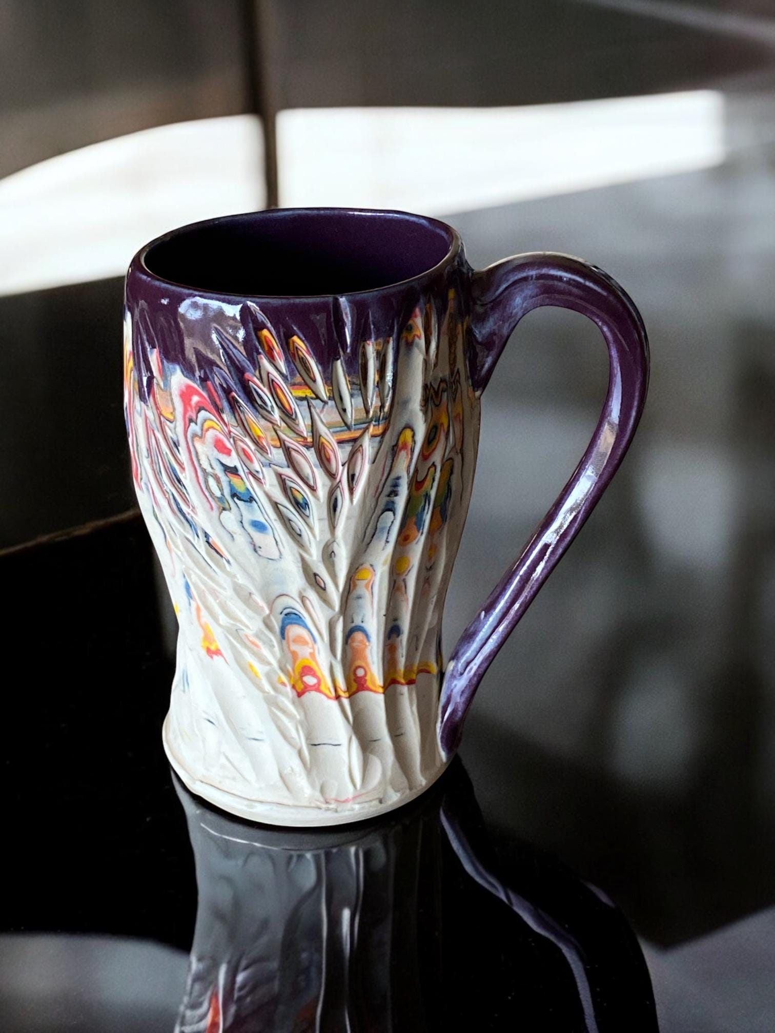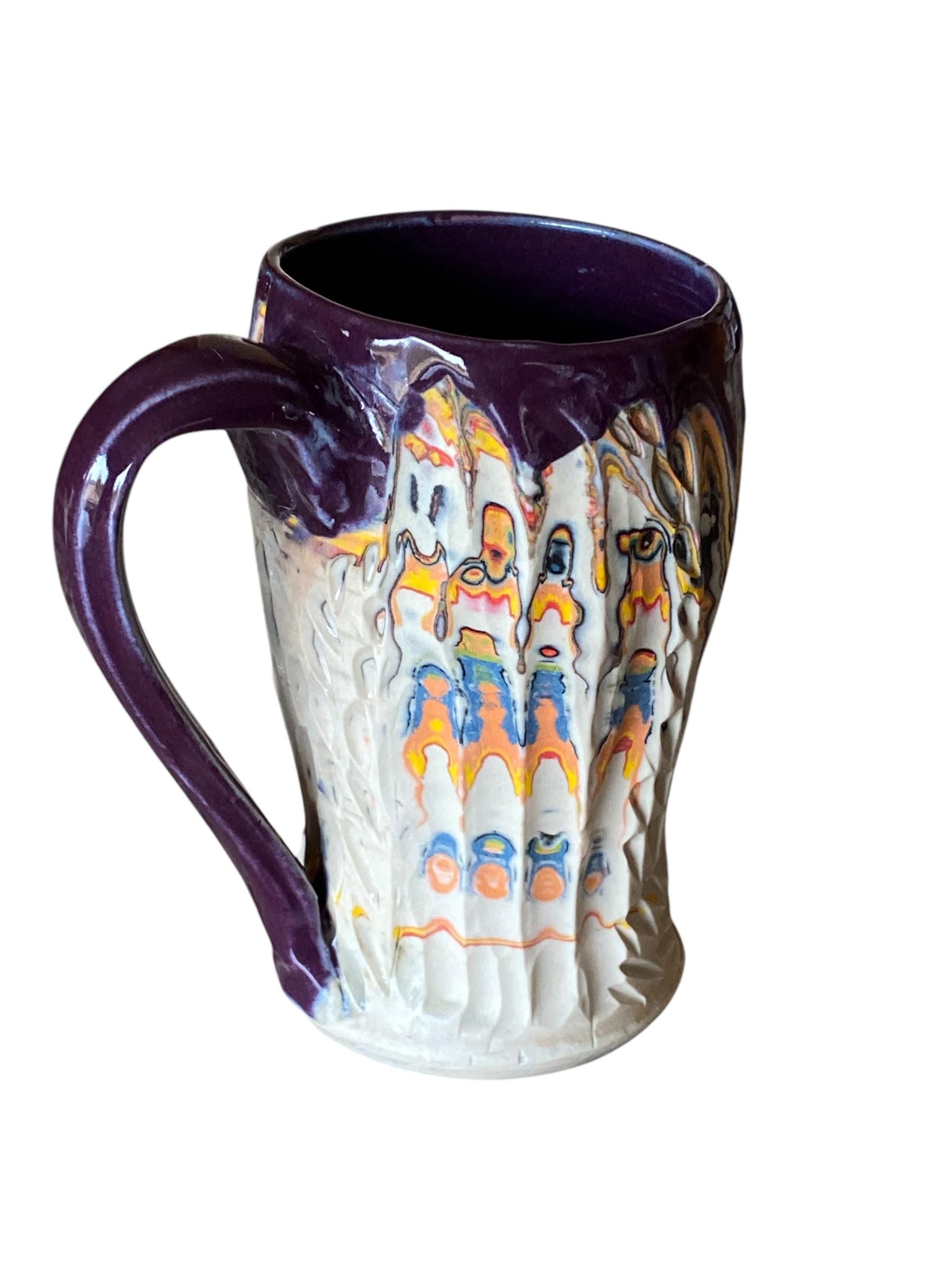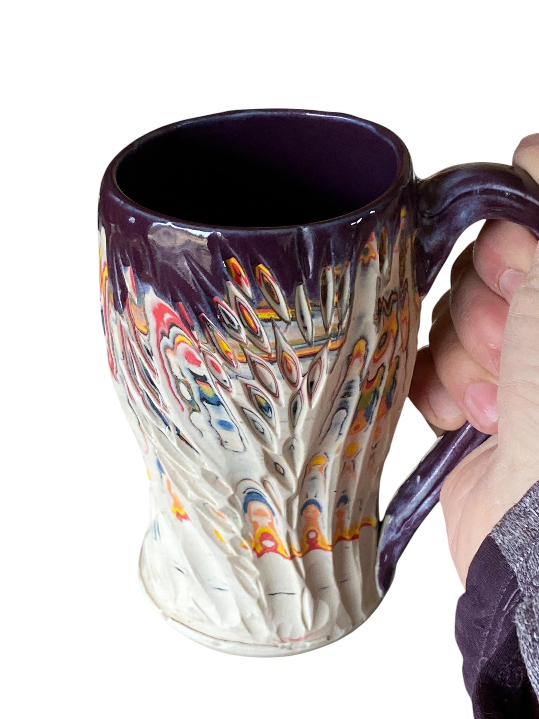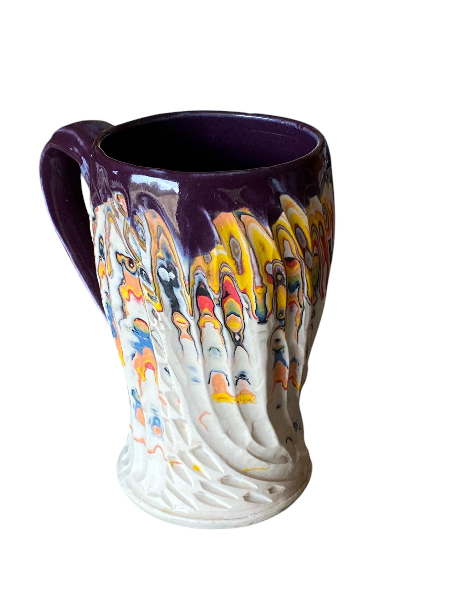 Handmade 14 Ounce Carved Nerikomi Coffee Mug With Rainbow Clay Colors