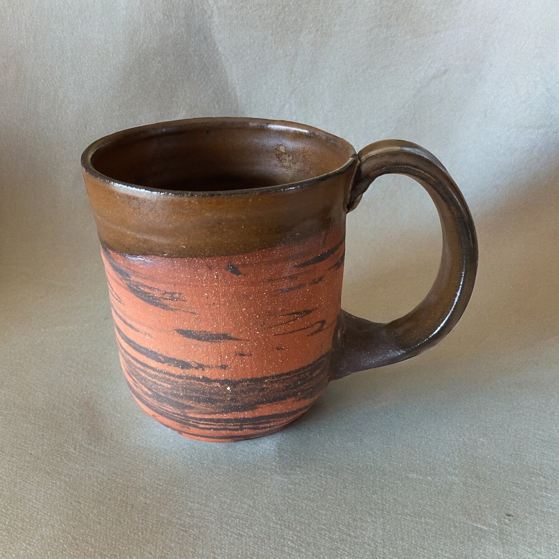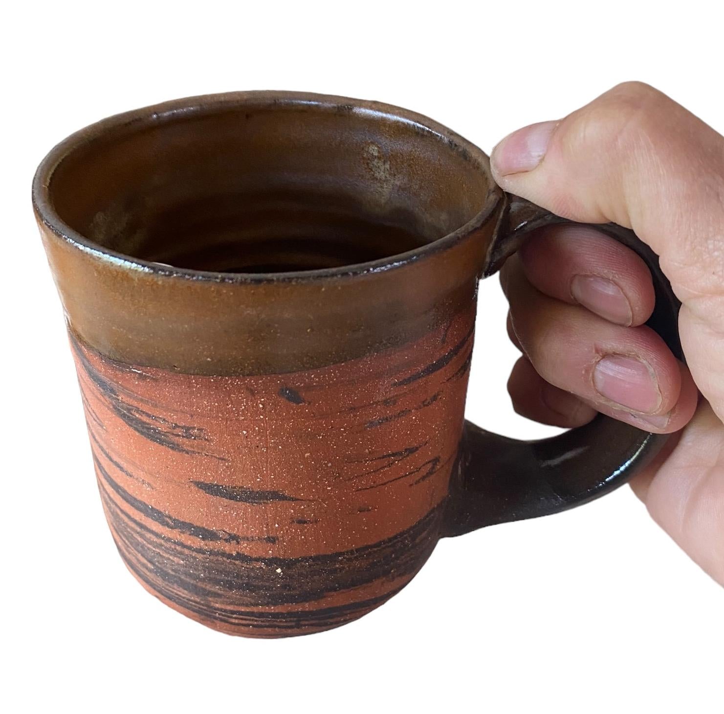 This handmade agateware coffee mug is a perfect blend of artistry and function. Crafted from layered stoneware, it features a smooth, soft cinnamon satin glaze that enhances its natural patterns. Holding 14 ounces, this mug is ideal for your morning coffee, afternoon tea, or any warm beverage of your choice. The unique agateware design, combined with its comfortable shape, makes this piece a standout in any mug collection. A great gift for pottery lovers or anyone who appreciates handcrafted, one-of-a-kind creations.