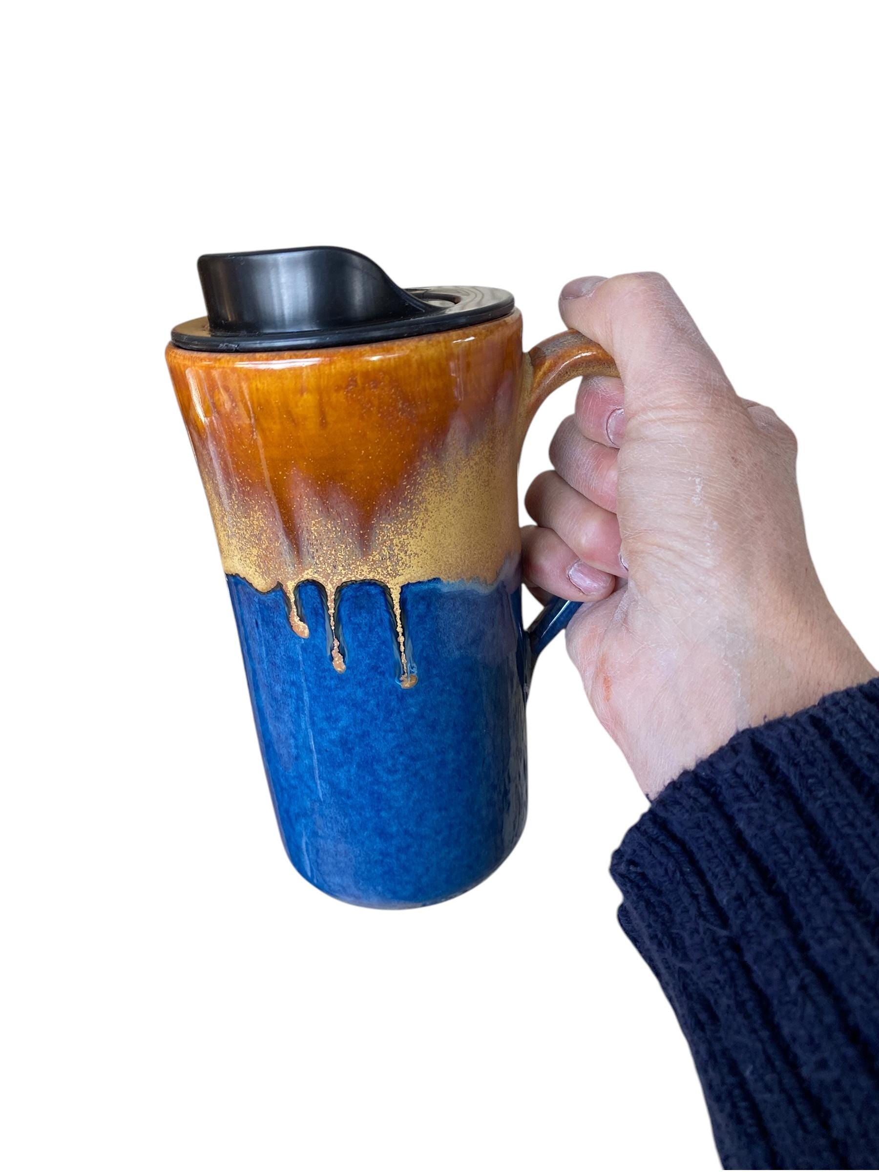 Handmade Caramel and Blue Travel Mug - Porcelain - Travel Coffee Cup - Travel Mug - Pottery Mug - Coffee Mug