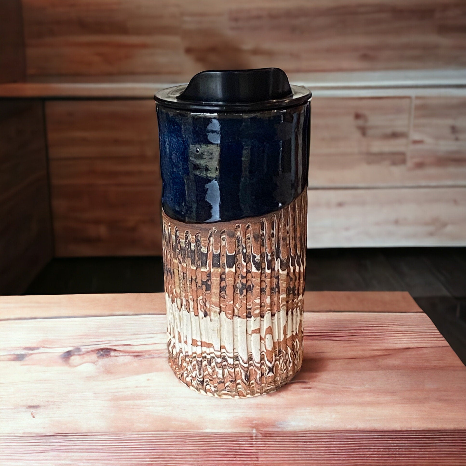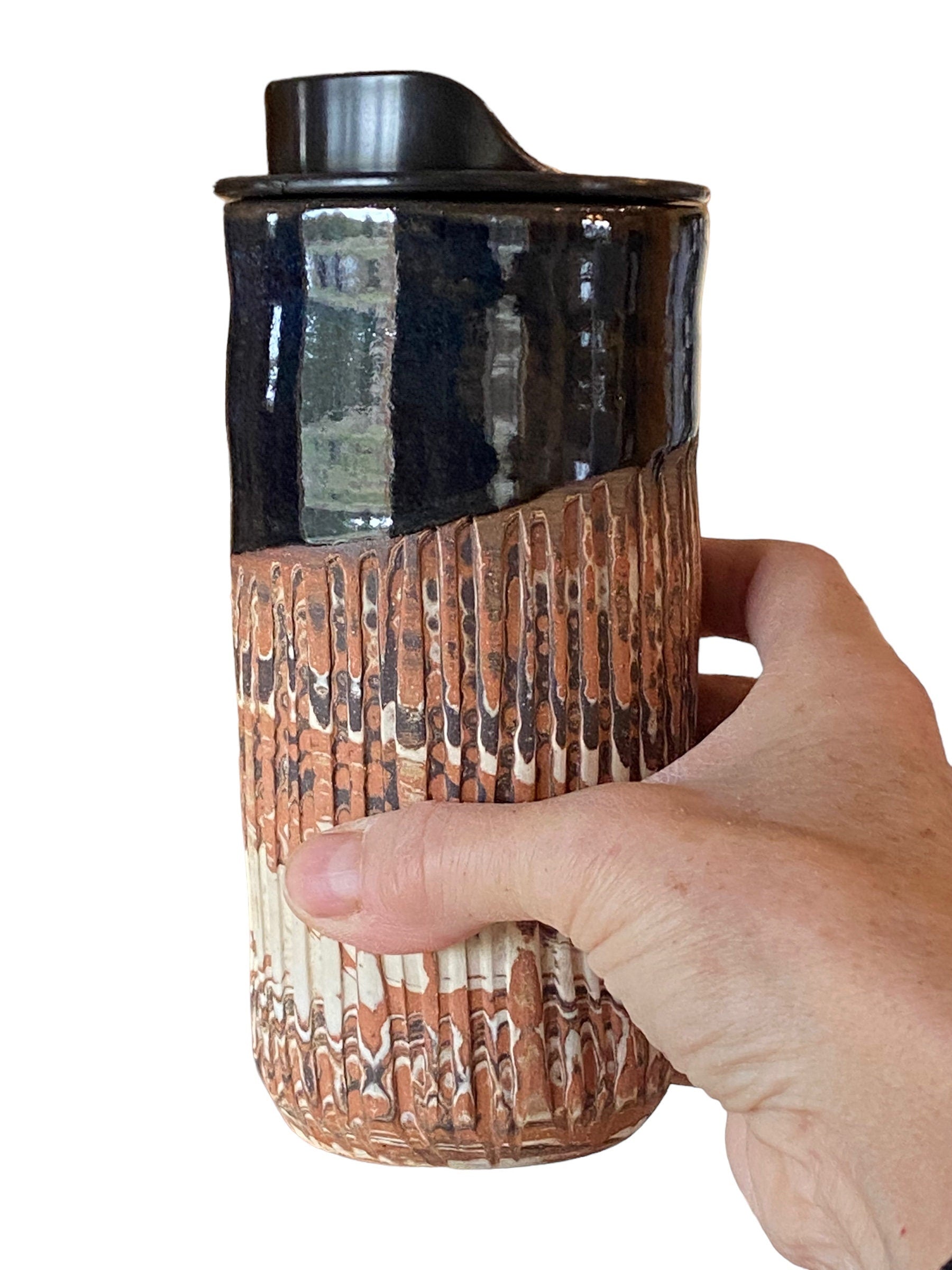 Unique Handmade Design: Each travel mug is individually carved with a heavily fluted Agateware design, making it a one-of-a-kind piece of functional art. The intricate patterns and textures add depth and character to the mug, creating a mesmerizing visual appeal.