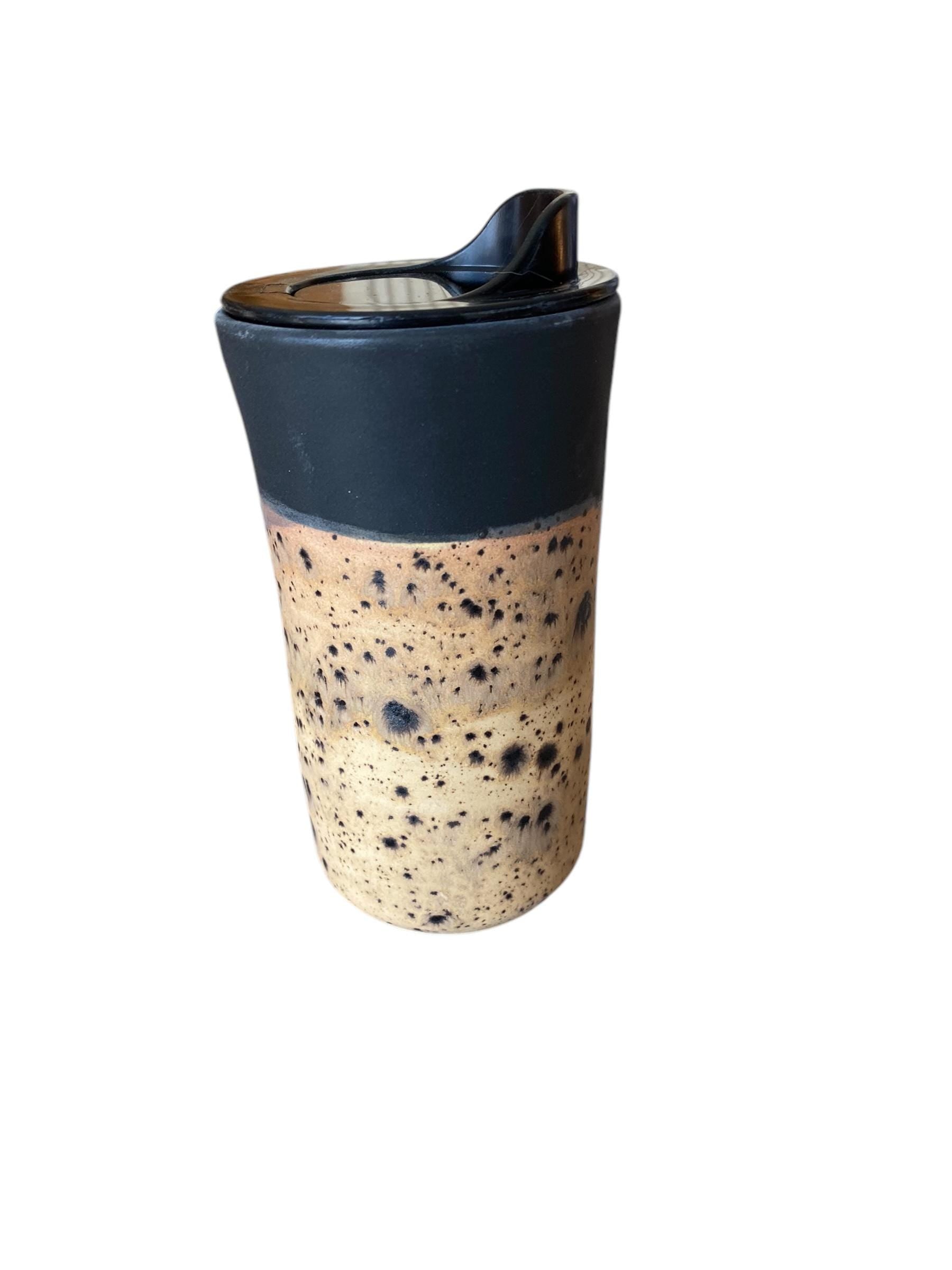 Handmade Matte Black and Spotted Rust Travel Mug - Porcelain - Travel Coffee Cup - Travel Mug - Pottery Mug - Coffee Mug