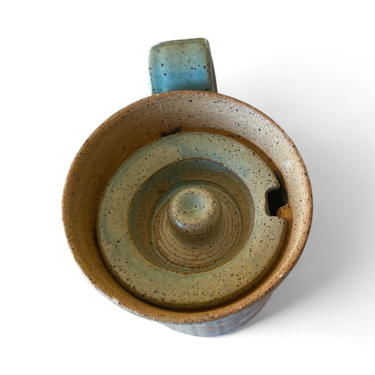 Designed for those who prefer a travel mug without a plastic lid, this mug features a handmade ceramic locking lid that keeps your beverage secure.