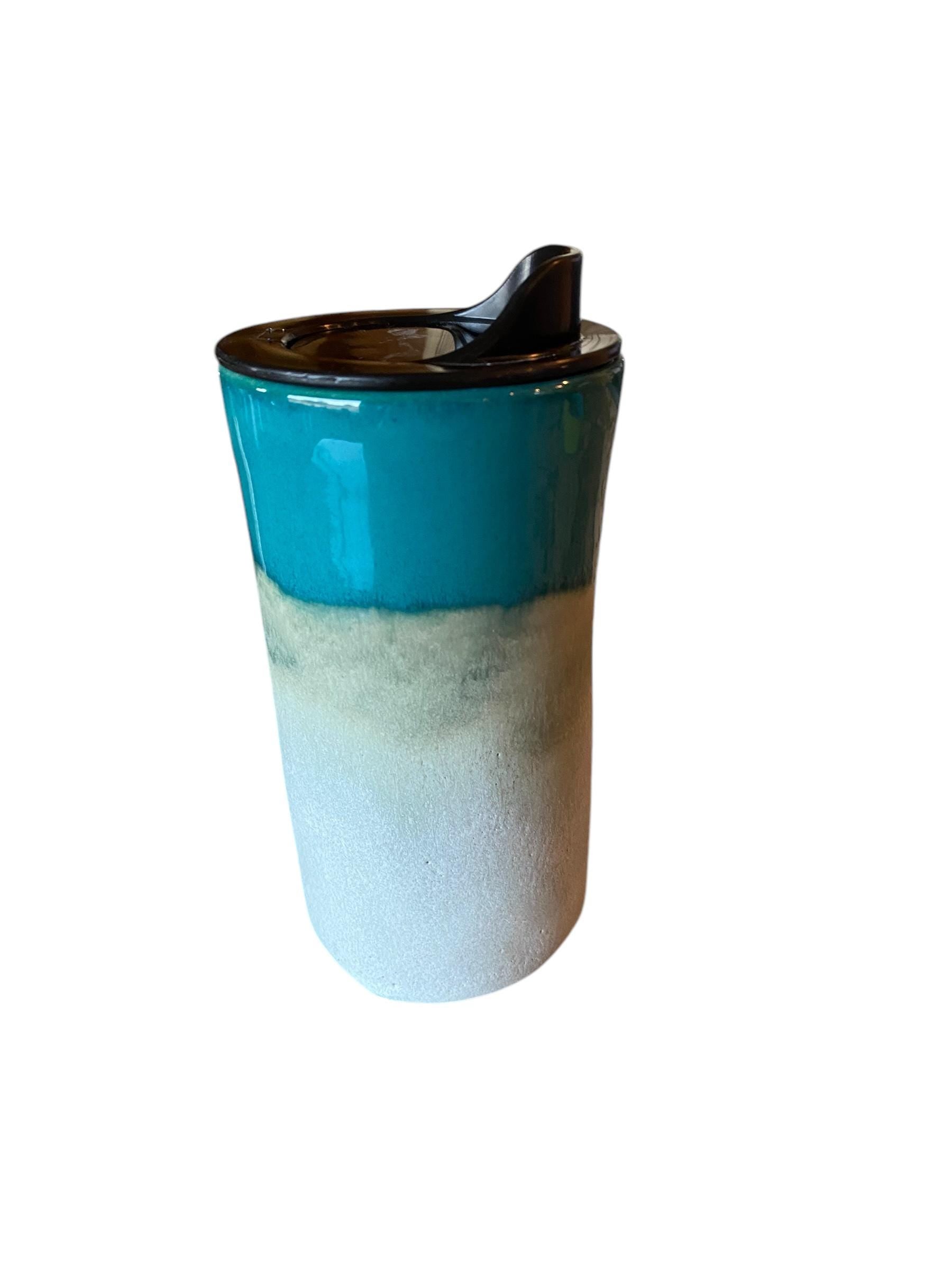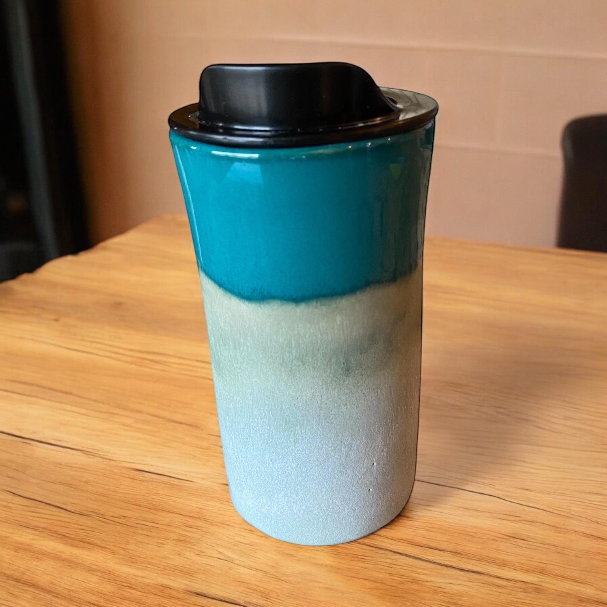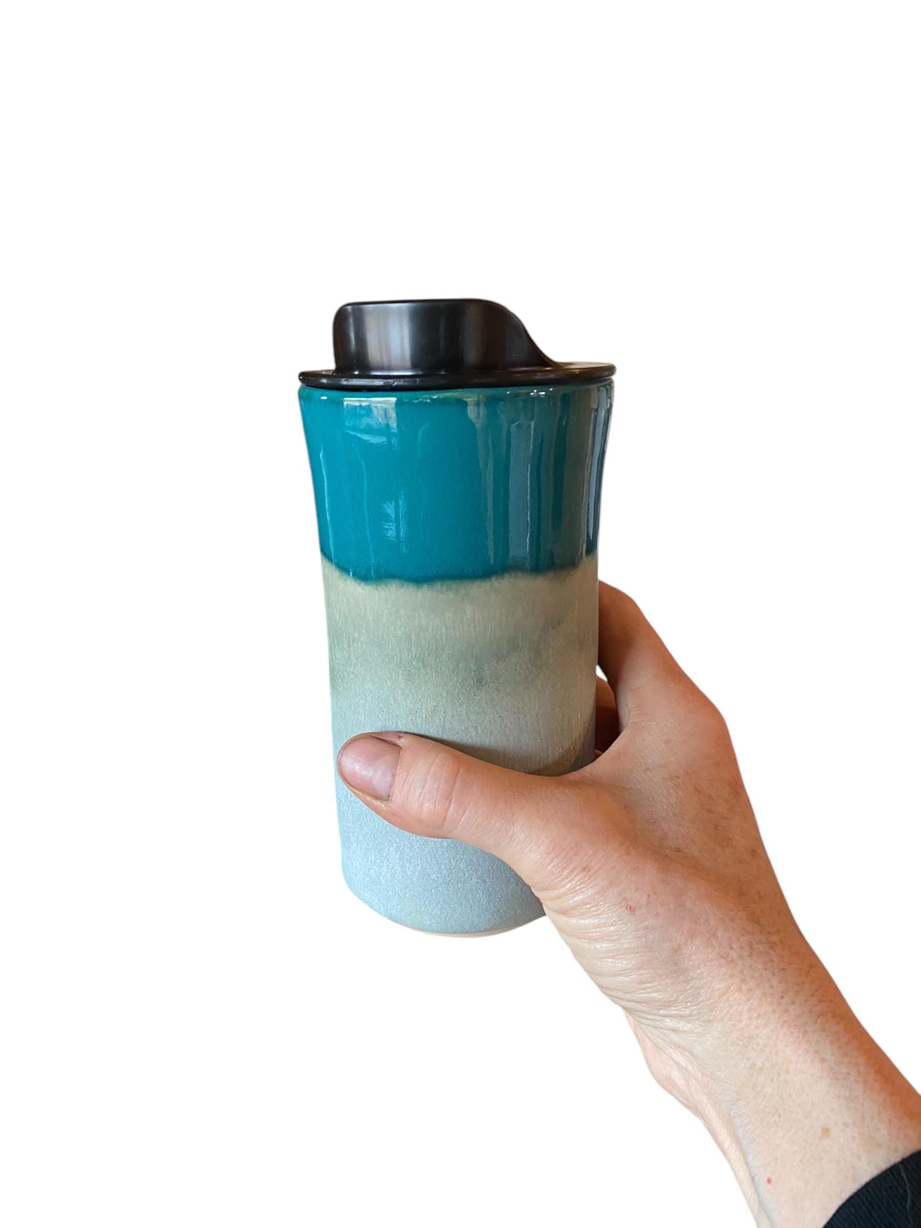 Handmade Turquoise and Sea Blue Travel Mug - Porcelain - Travel Coffee Cup - Travel Mug - Pottery Mug - Coffee Mug