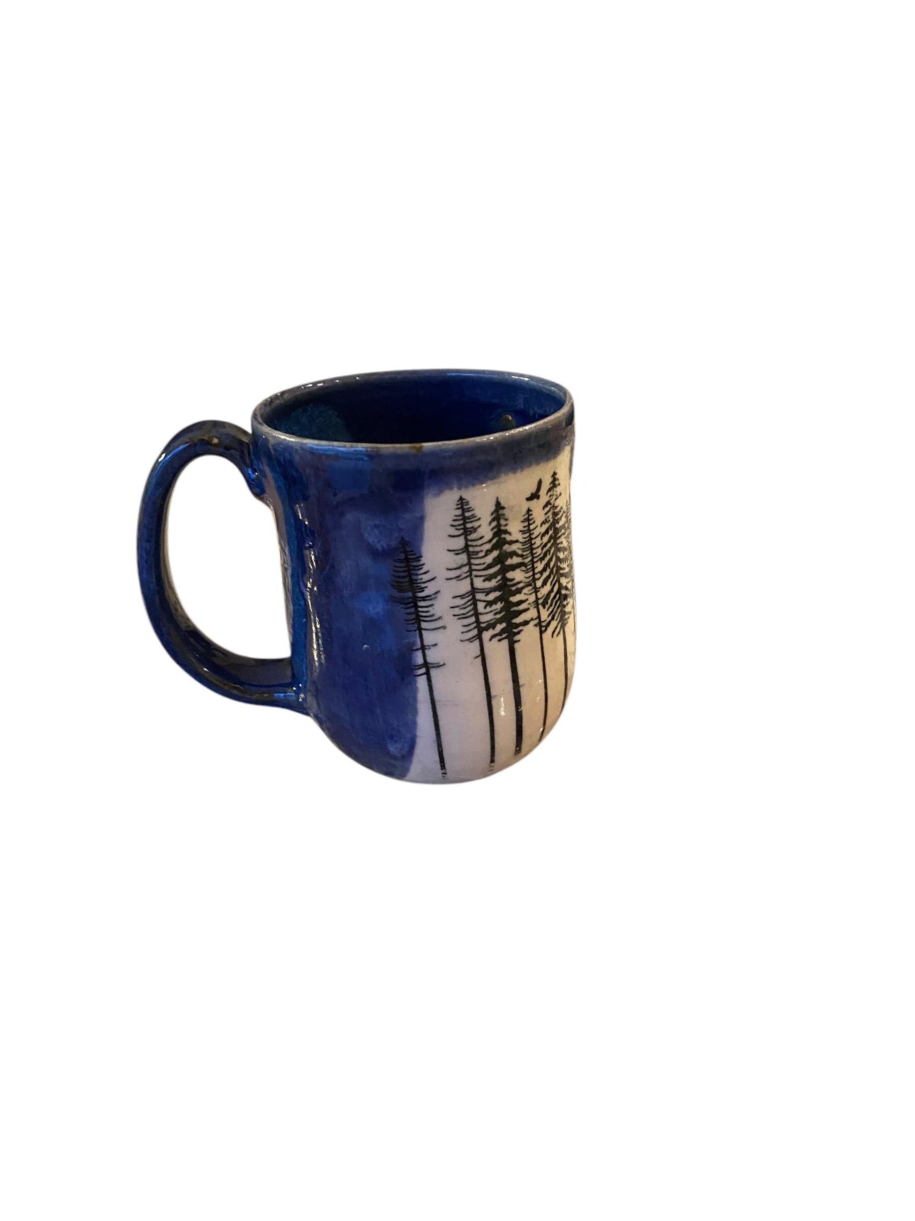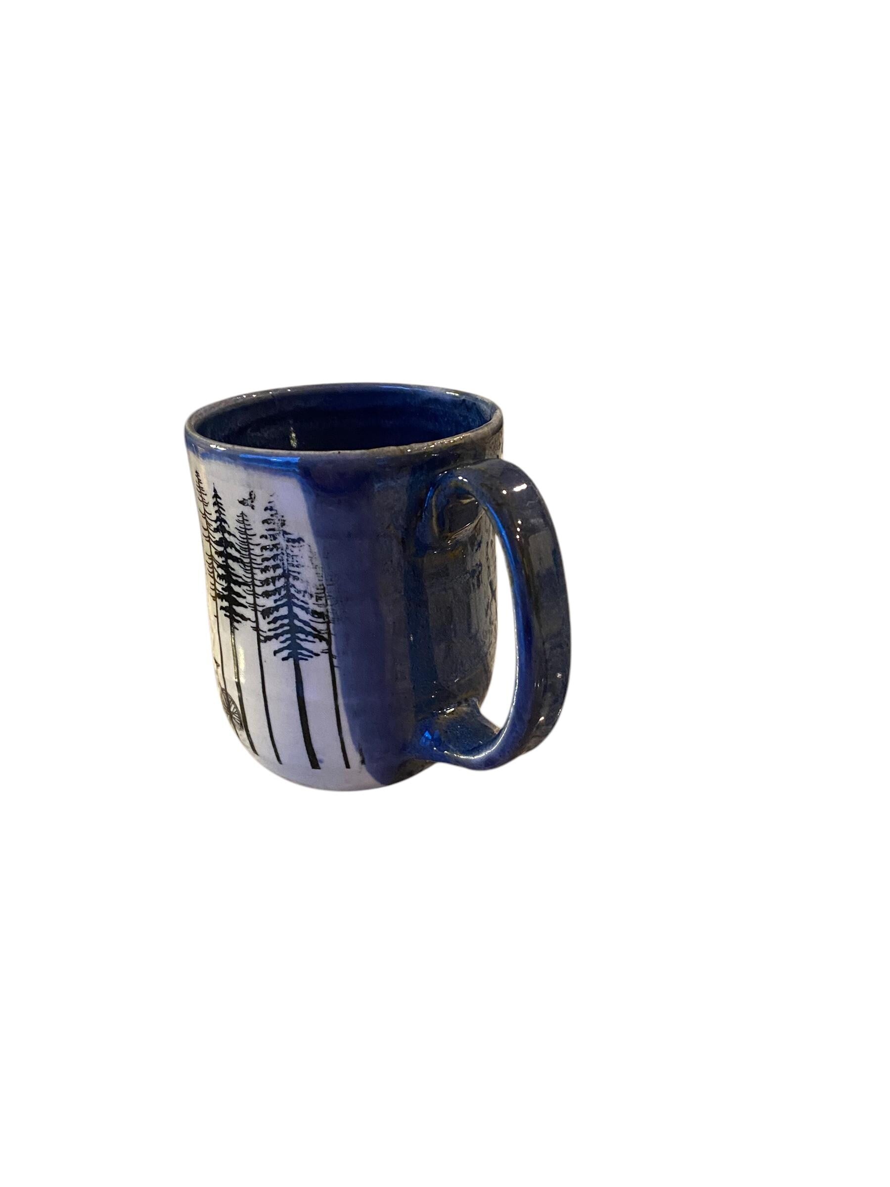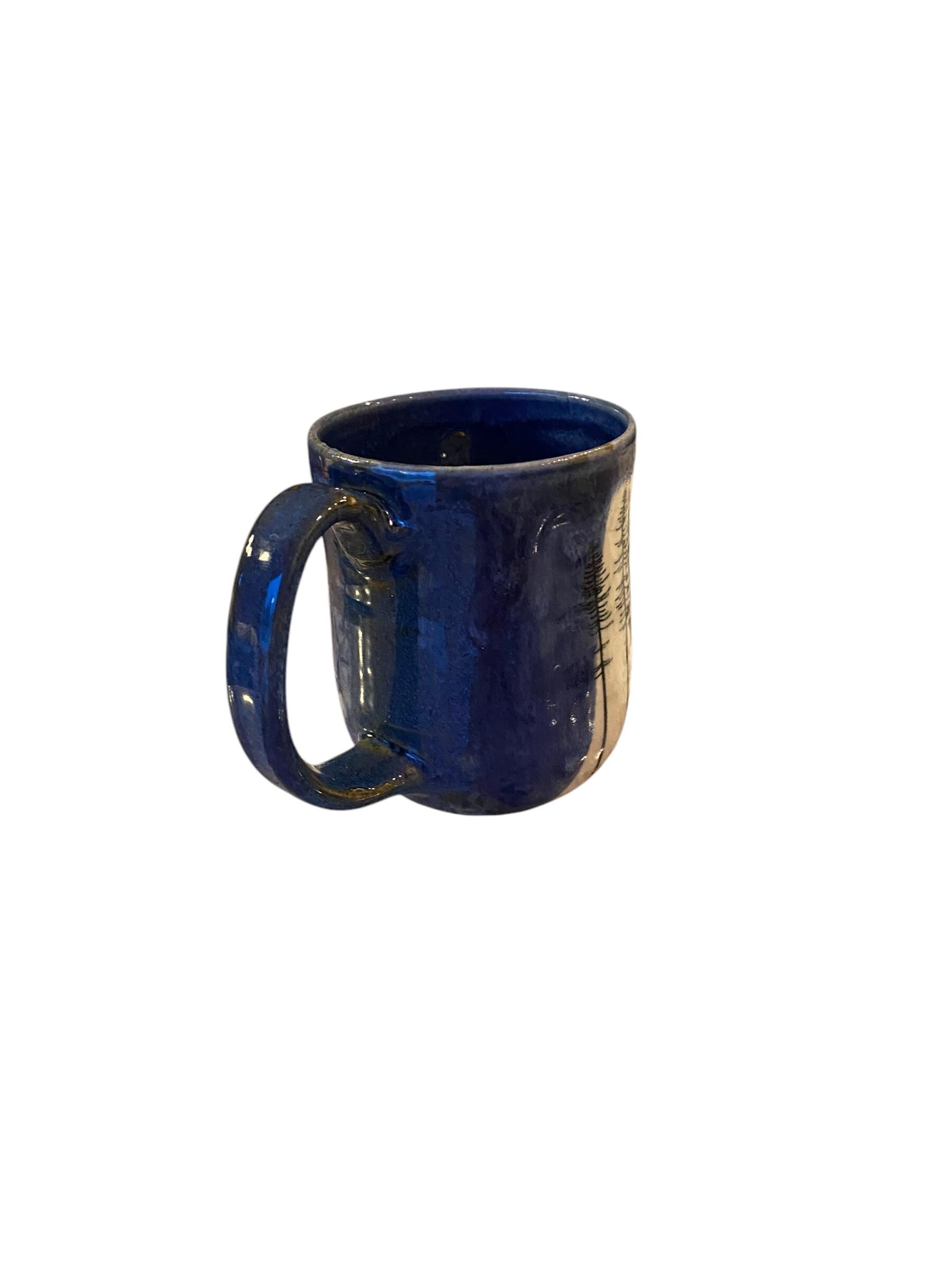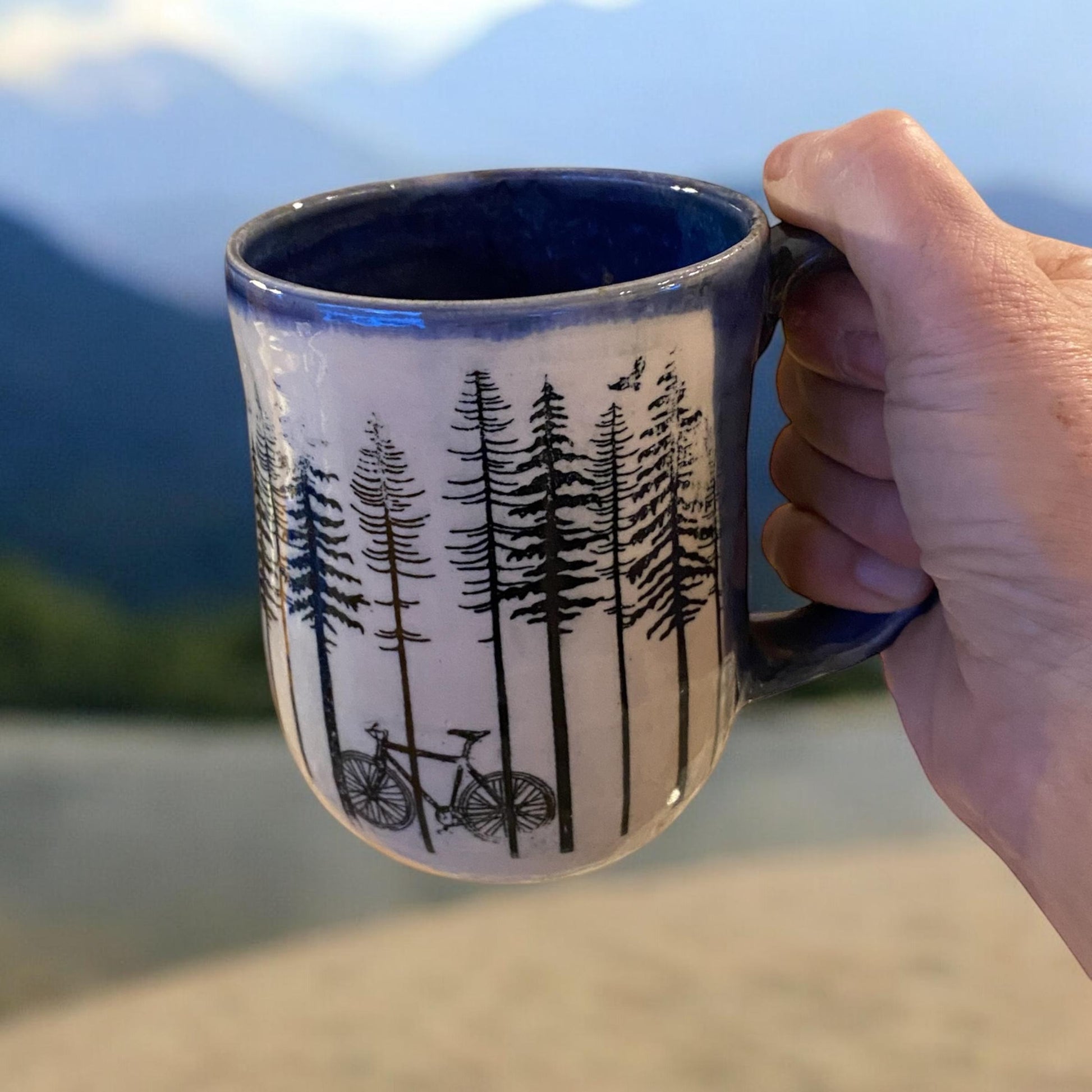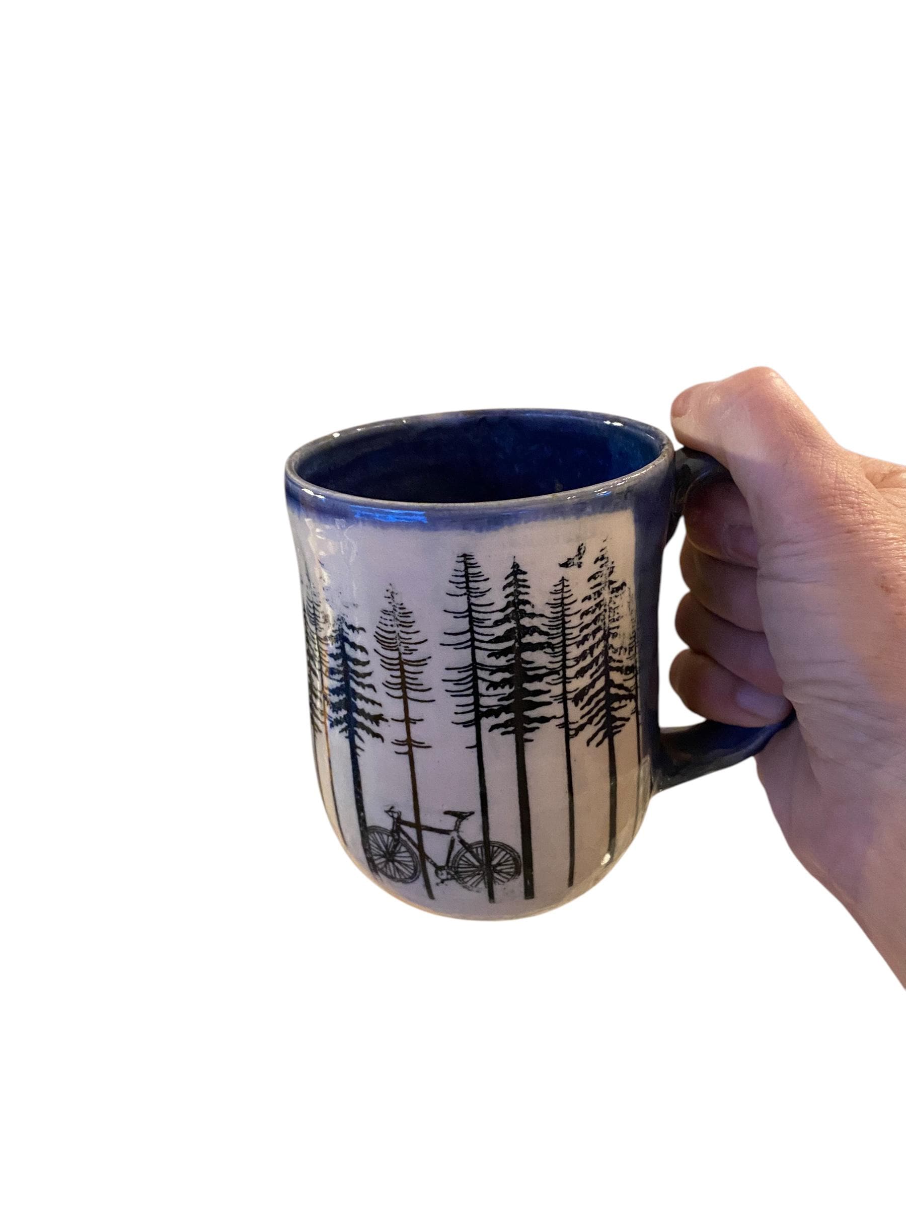 Large 16-Ounce Mug with Tree and Bike Design, and Blue Glaze