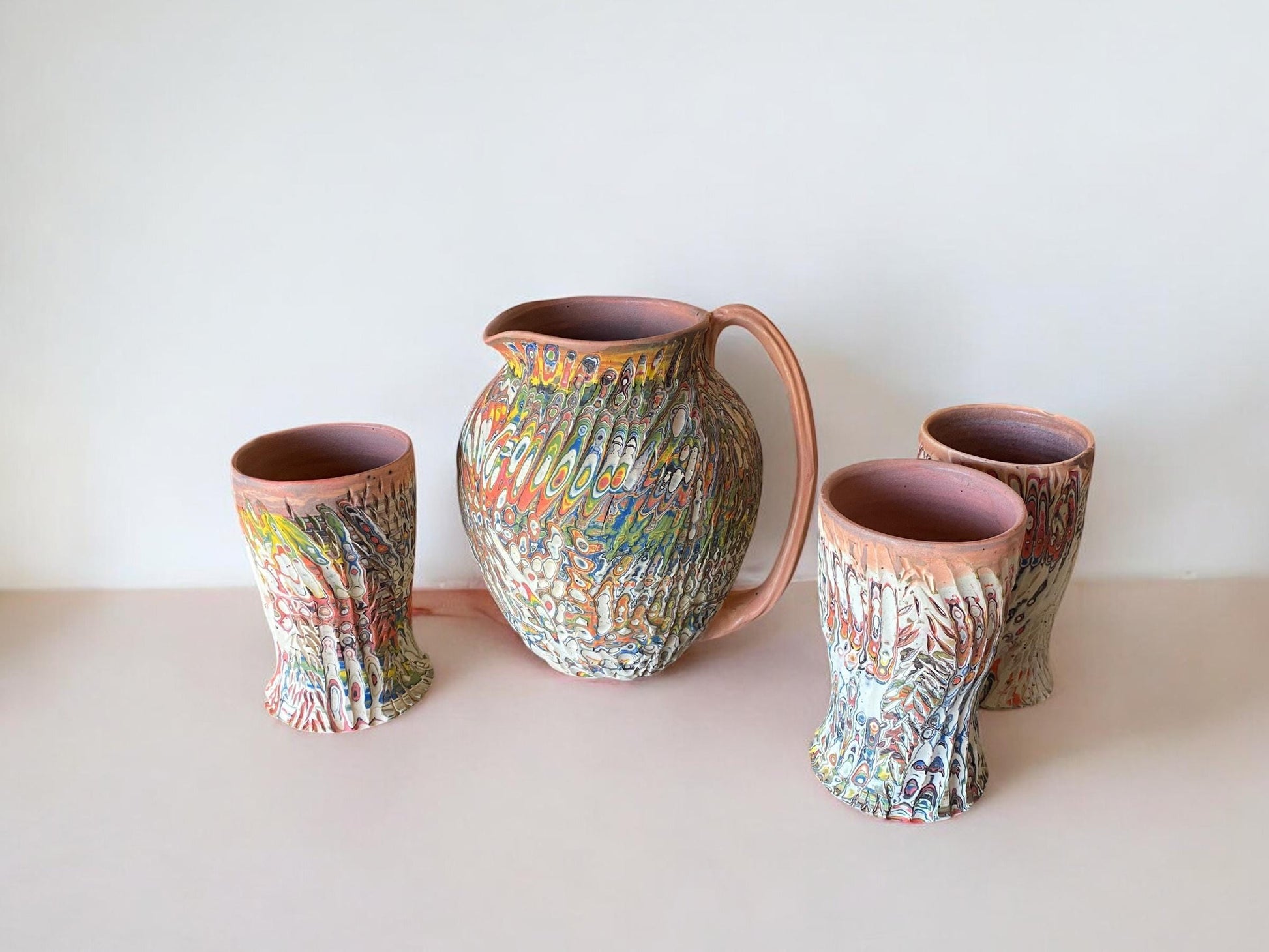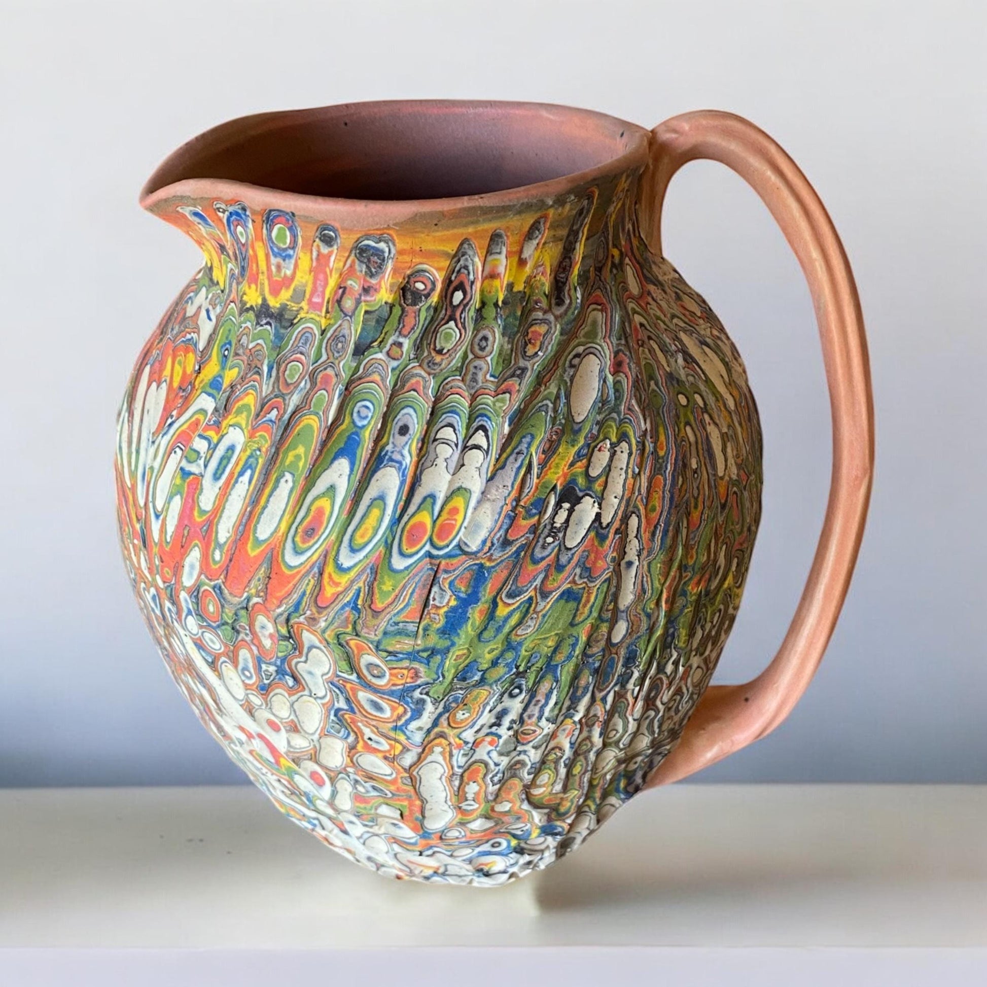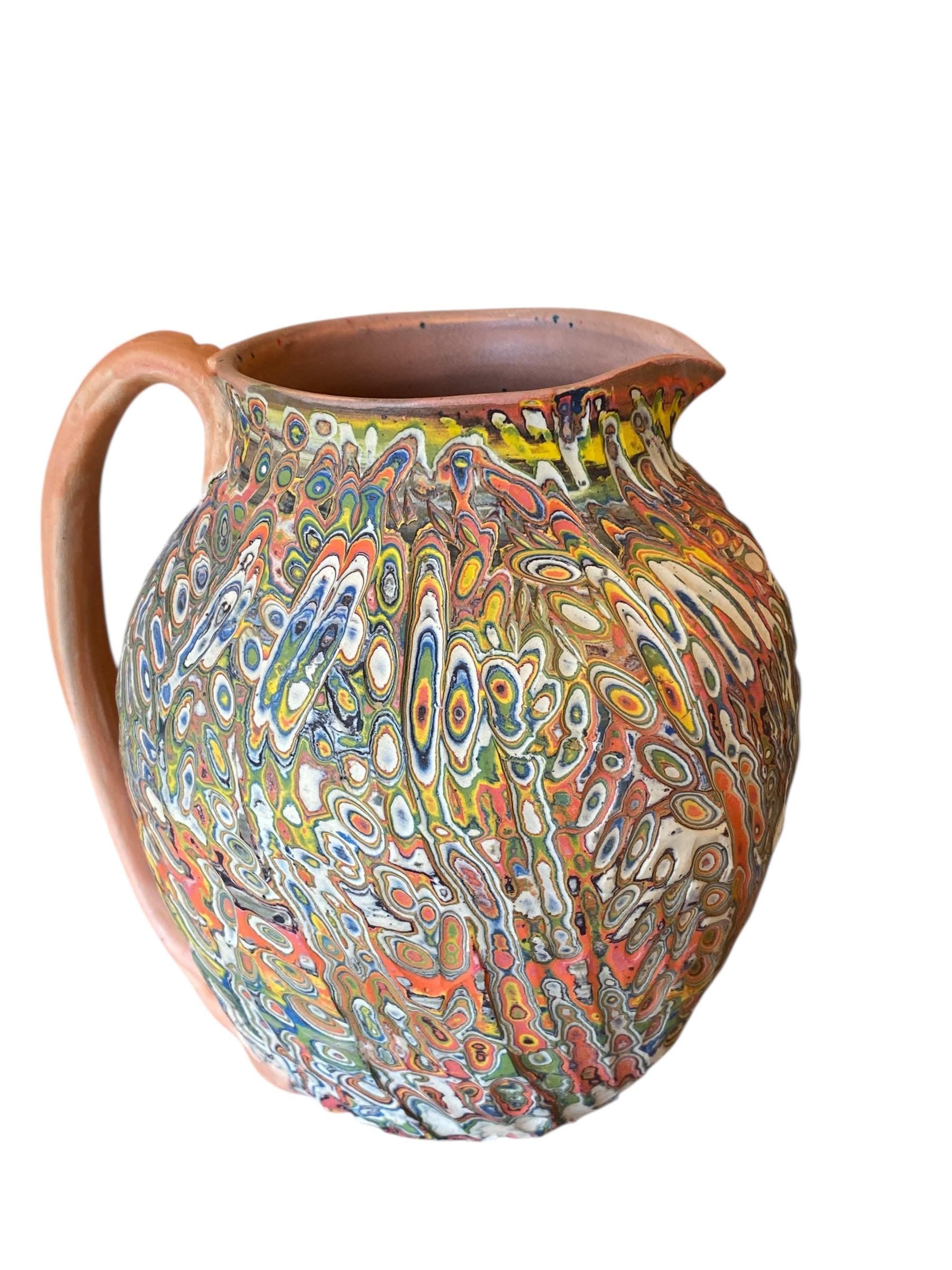 Large Agateware Carved Pitcher - Nerikomi Margarita Pitcher