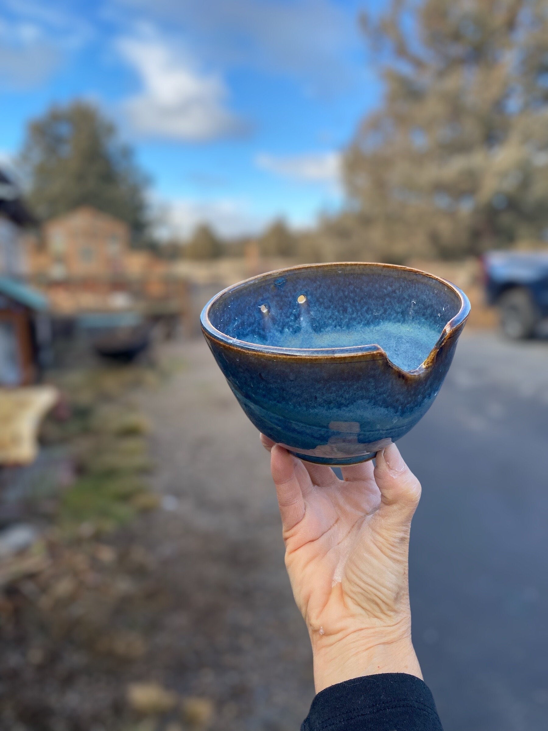 This small blue ramen bowl exemplifies the beauty of handcrafted pottery, combining artistry with everyday functionality. Each bowl is individually crafted on the pottery wheel using layered stoneware clay, a traditional agateware technique that creates subtle natural patterns within the form. Finished with a reactive blue glaze, the surface shimmers with depth and variation, adding an elegant touch to your table.