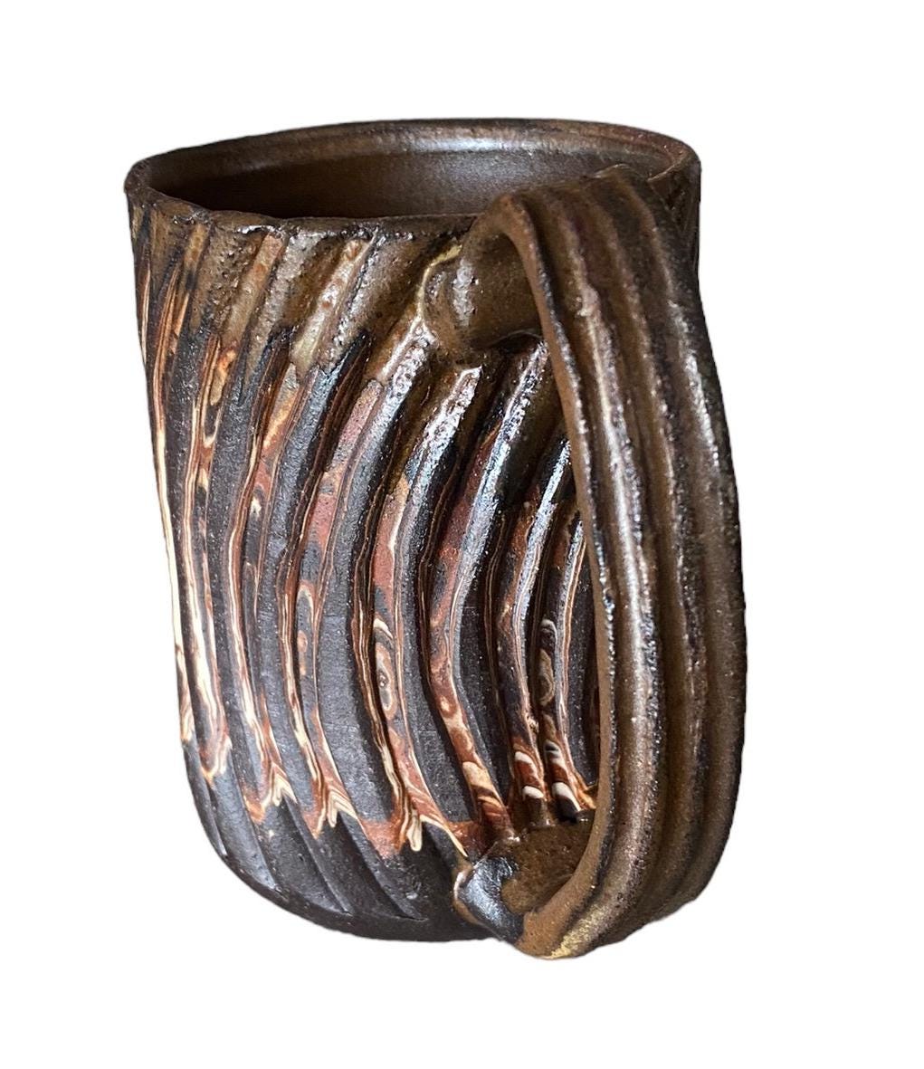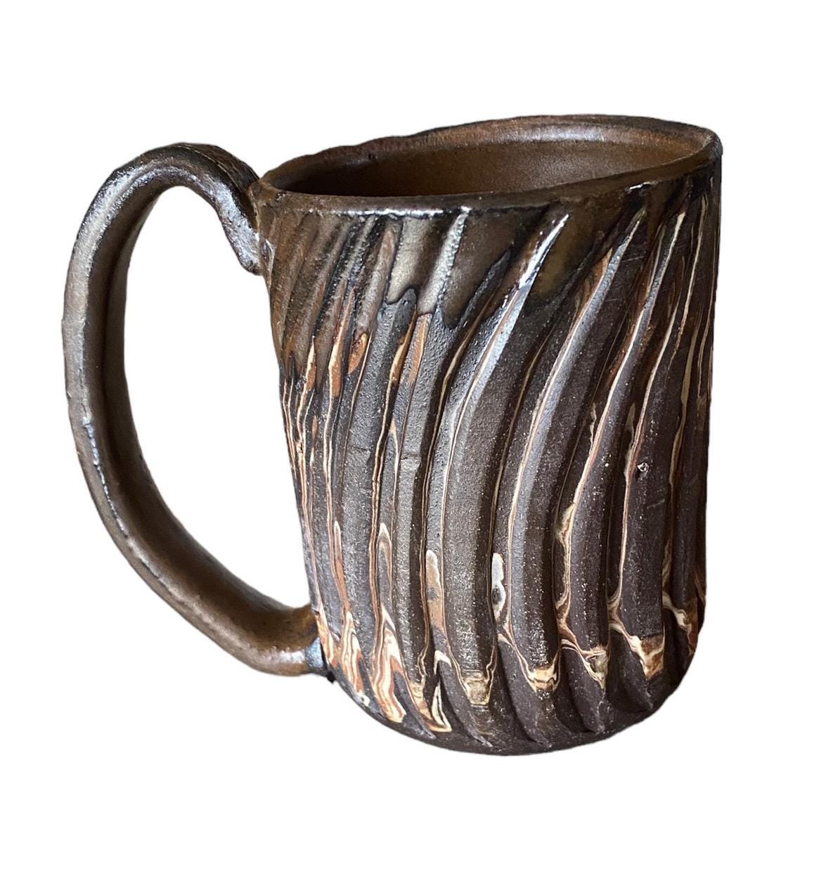 Indulge in a stylish coffee or tea experience with my Red, White, and Black Agateware Carved Coffee Mug, part of my handmade pottery collection. Crafted from red, white, and black stoneware, this mug features a captivating and distinctive design. Hand-thrown with care, it offers a comfortable grip for your hands, while the cinnamon reactive glaze accentuates the intricate layers of clay. Whether it's your morning ritual or an afternoon pick-me-up, this mug adds an elegant touch to any moment. Elevate your daily routine with this essential piece for coffee and tea enthusiasts alike.