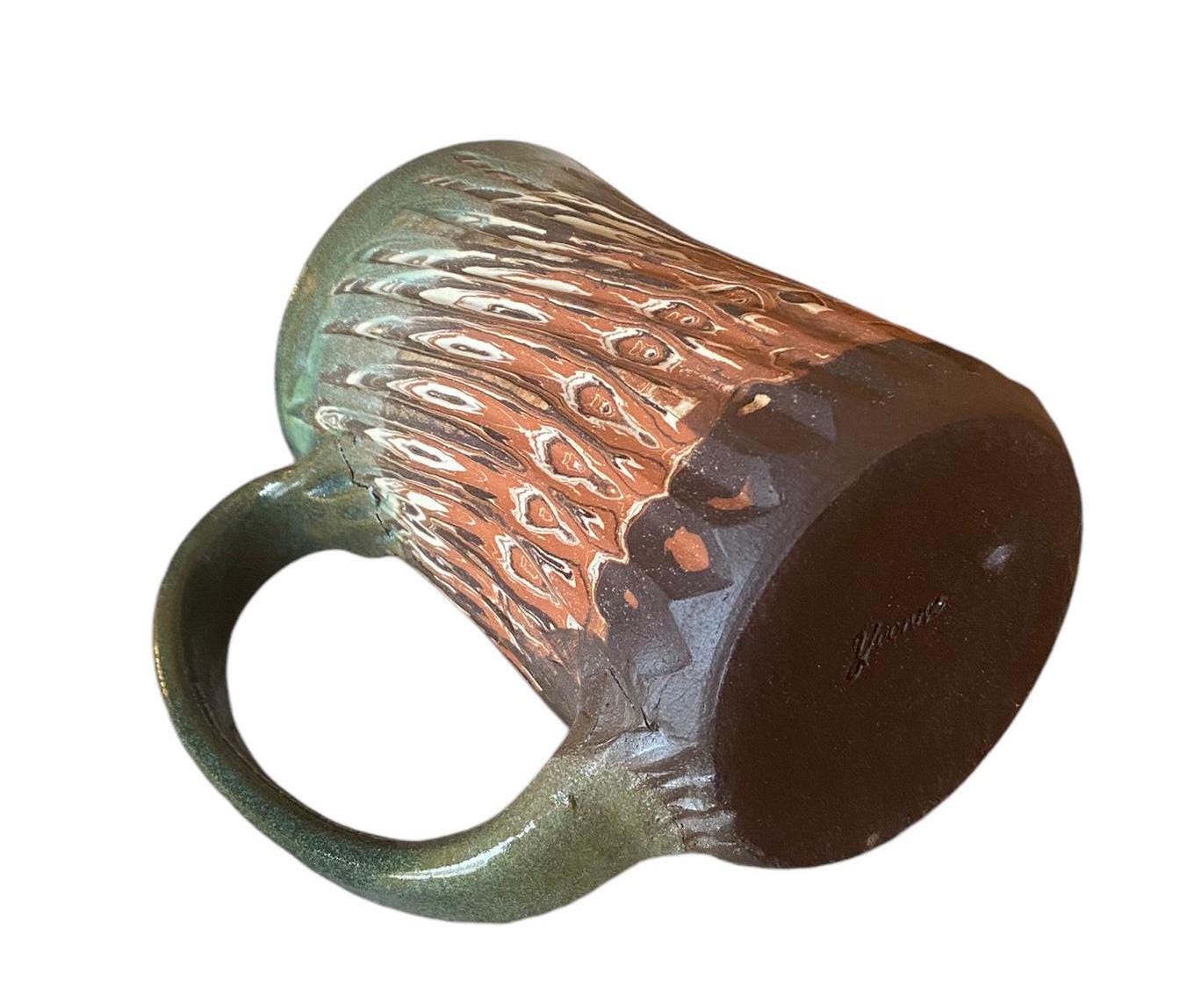Red and Black Carved Agateware 16-Ounce Coffee or Tea Mug Framed in Sage Glaze: Handcrafted Elegance for Your Morning Brew
